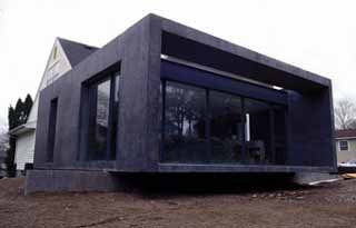 The Tall Acres project is an excellent example of the "theory-made-visible aspect of his practice. It explores the relationship between the nearly disposable, vinyl-sided, saltbox house and a new addition comprising a 72-ton tube of black polished concrete. The work examines how weight, color, structure and permanence can oppose one another.