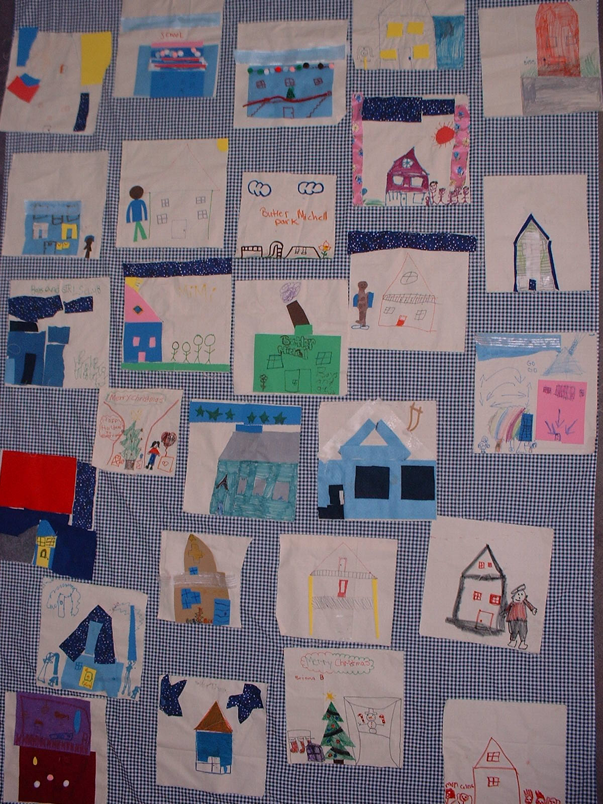 * The Neighborhood Quilt, in which each child decorated and sewed together canvas squares to depict their own homes and their "neighborhood," demonstrating their understanding of basic geographic concepts.