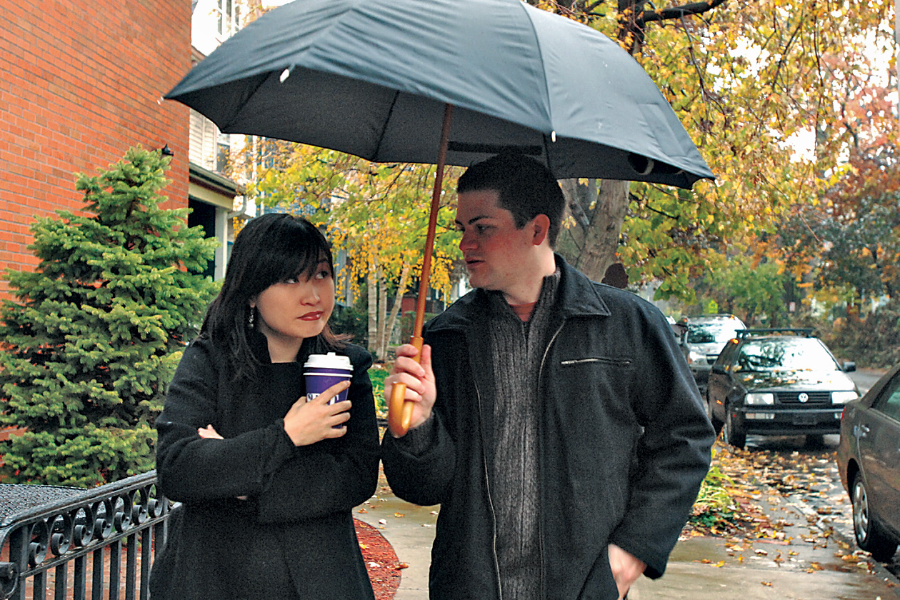 An umbrella resembles "a little piece of portable architecture…a semi-private space…in the public sphere," Barr said. Sharing a space designed for one to shelter from the rain inspires closeness because under the circumstances people don't mind walking shoulder-to-shoulder.
