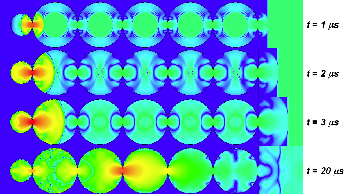 "It turns out that the shock pulse is more easily managed when tiny interstitial grains are placed between the many progressively shrinking spheres or grains that make up the tapered chain," he said.