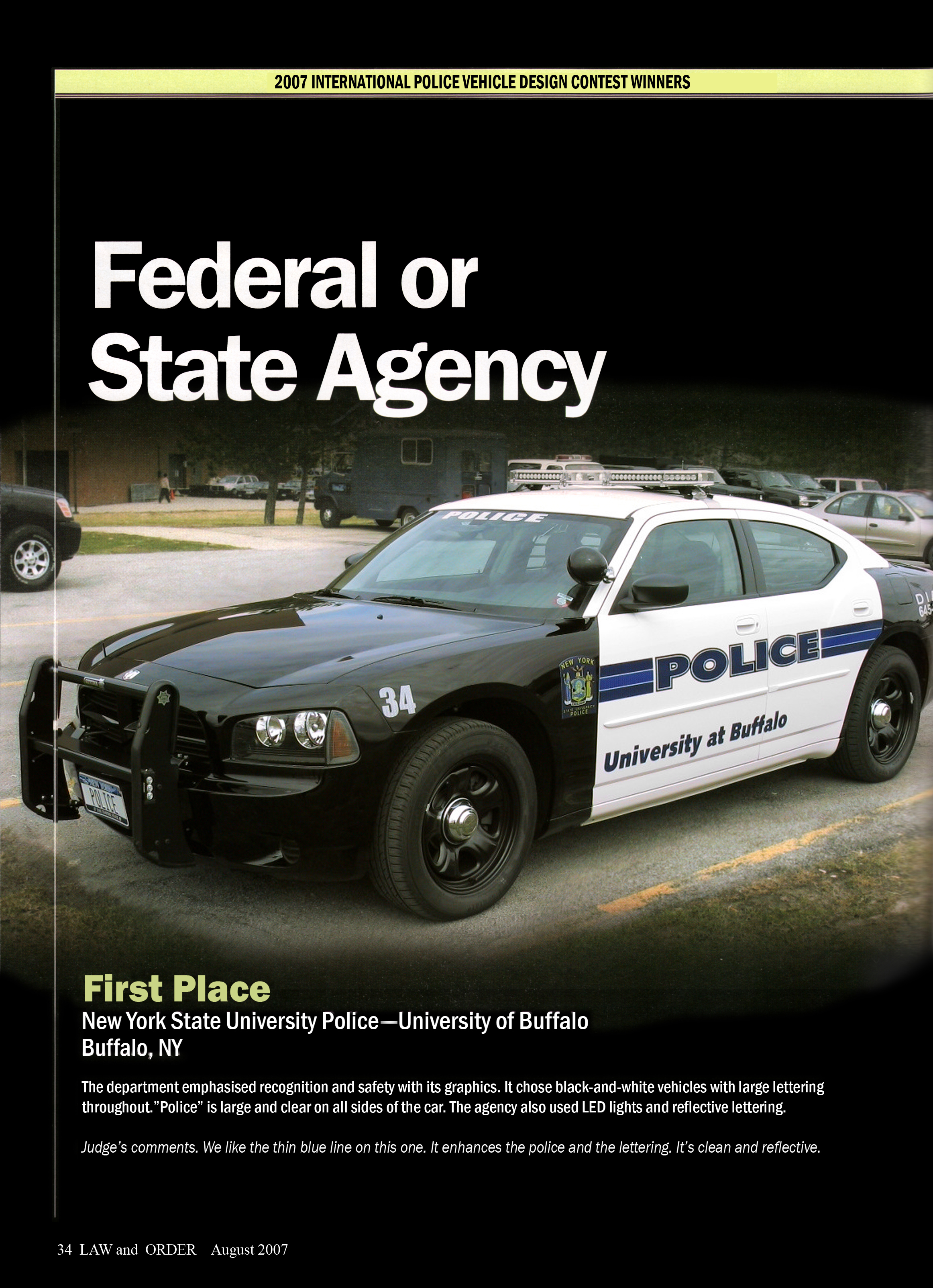 BUFFALO, N.Y. -- The University at Buffalo Police have won a first-place prize in the 2007 International Police Vehicle Design Contest sponsored by Law & Order magazine.
