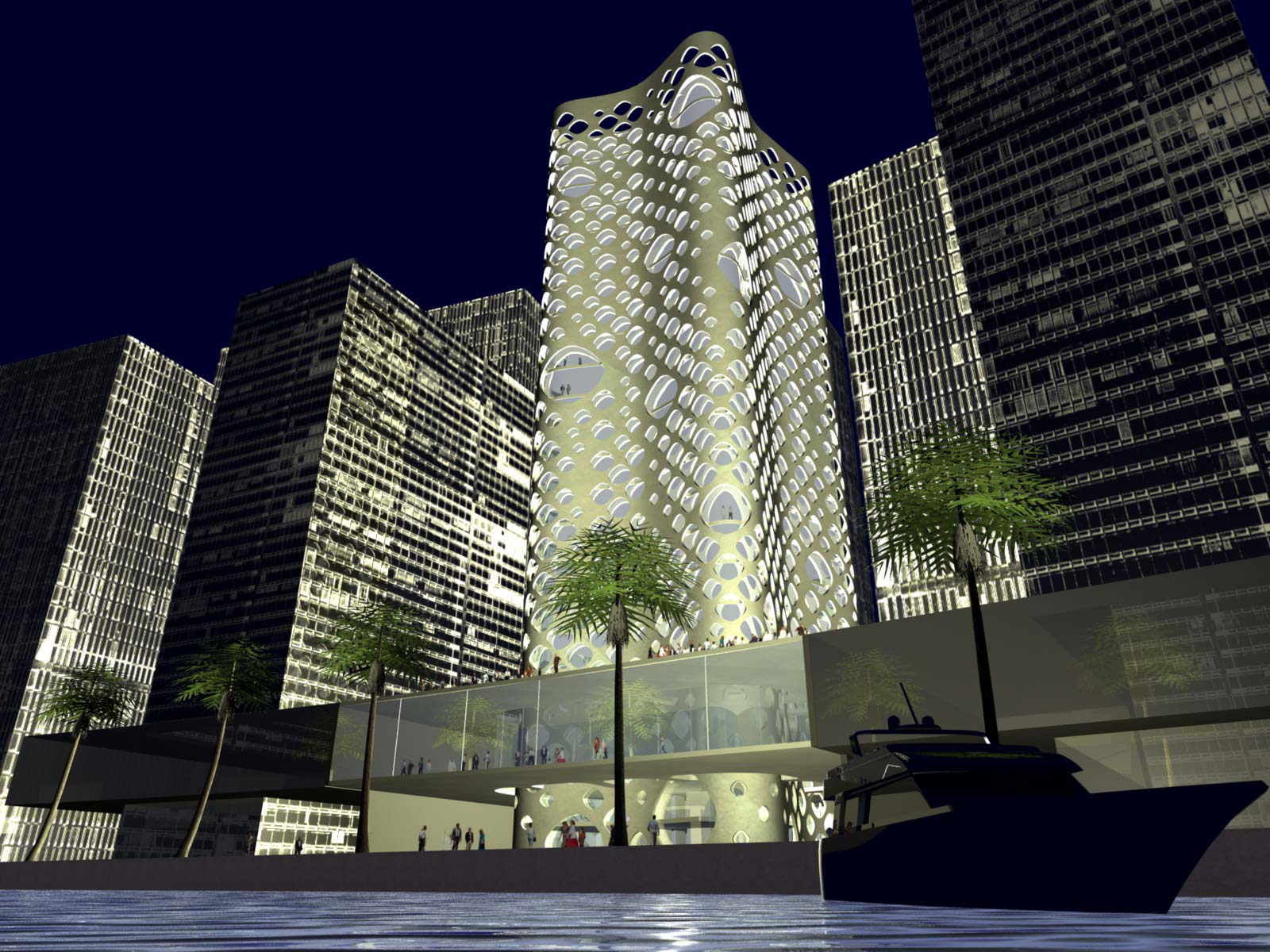 One of the firm's most notable recent buildings is "O-14," a 22-story commercial tower perched on a two-story podium in the center of Dubai's business district. The building has generated extraordinary international interest in the architectural press, as it is among the most innovative designs in a sea of generic Dubai office towers. Its 300,000-plus square feet of space is sheathed in a 40-centimeter-thick concrete shell perforated by more than 1,300 openings that create a lace-like effect on the building's façade.