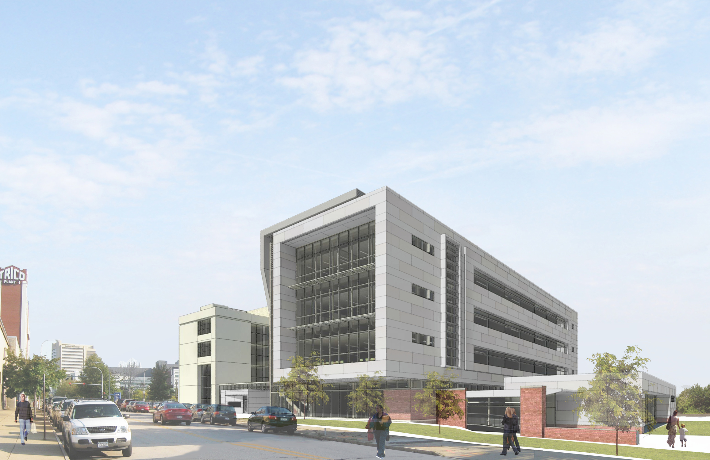environmentally friendly, durable fiber cement panels and glass. The design will feature large window frames and open stairways that bring natural light into the building, and offer faculty, staff and students dynamic views of the city.