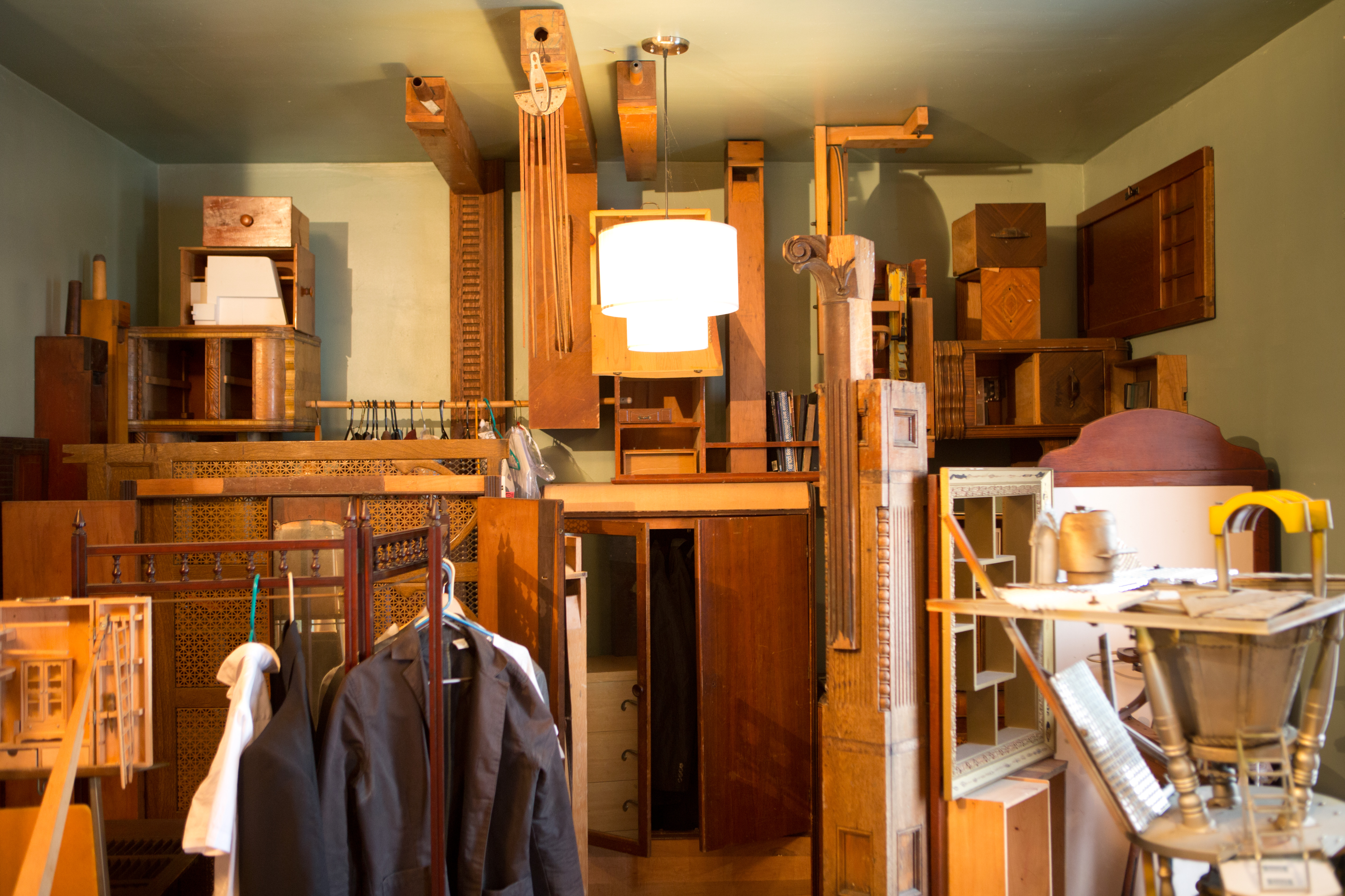 Accumulation: This is the ongoing process by which Maher gathers and adds objects to the house. This endeavor marries the city with the interior of the home, and confuses the boundaries between these normally distinct spaces. “I’m interested in thinking about the lives of objects, in the way that things move in a city,” Maher says. “It’s in the nature of objects to move around, and this house has become a collector and consolidator of the animate lives of matter.”