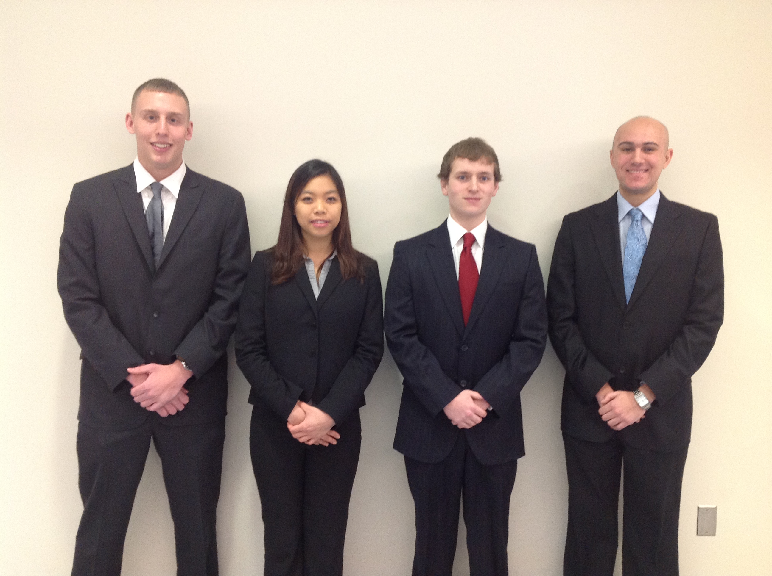 The winners, representing the International Business Association student club, were Jeffrey Kohnke of Niagara Falls, Li Yi Tan of Staten Island, Daniel O'Connor of East Amherst, and Daniel Yanega of Levittown.