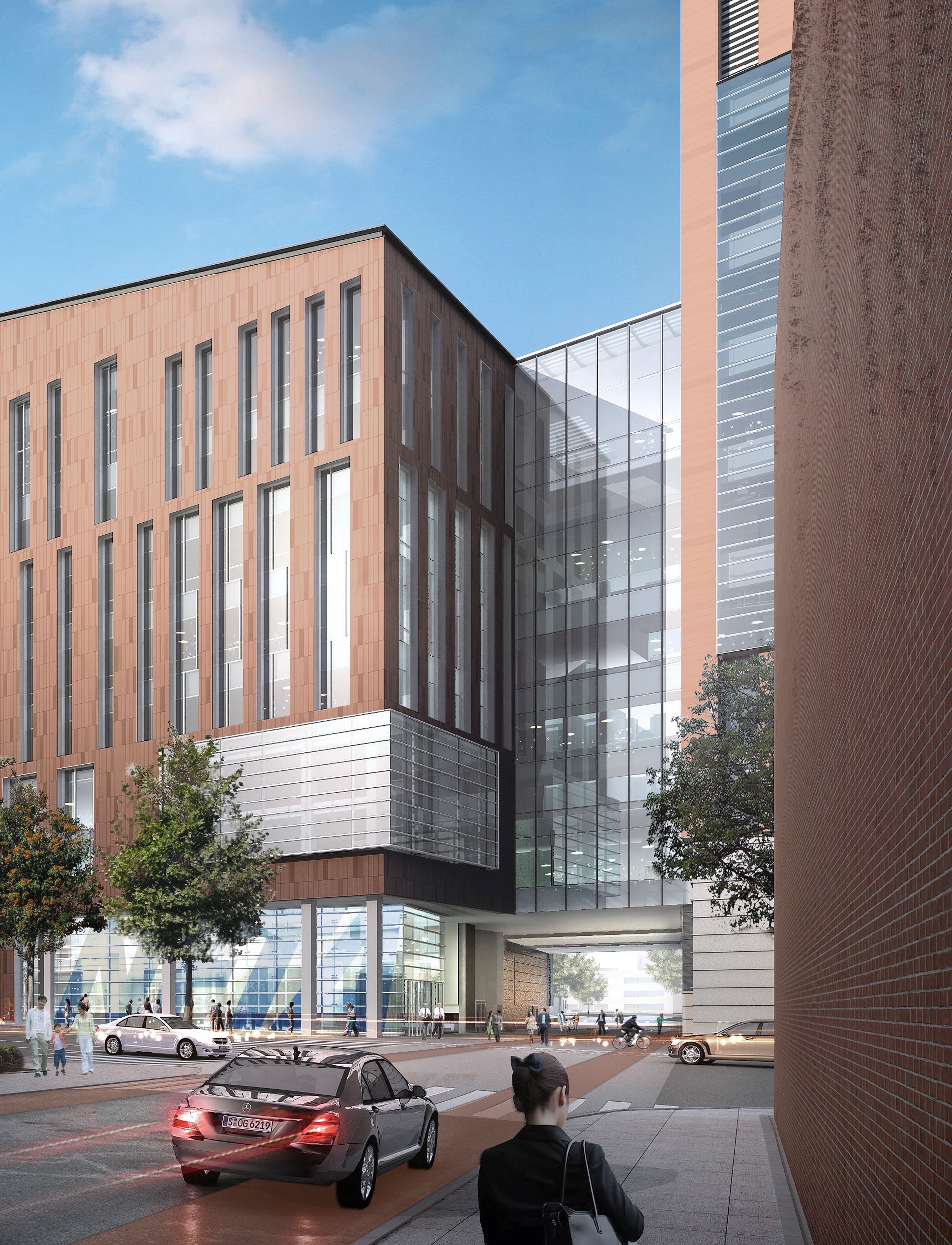 The building’s façade will be clad with a high-performance terra cotta rainscreen and a glass curtain wall system that will bring daylight deep into the building.