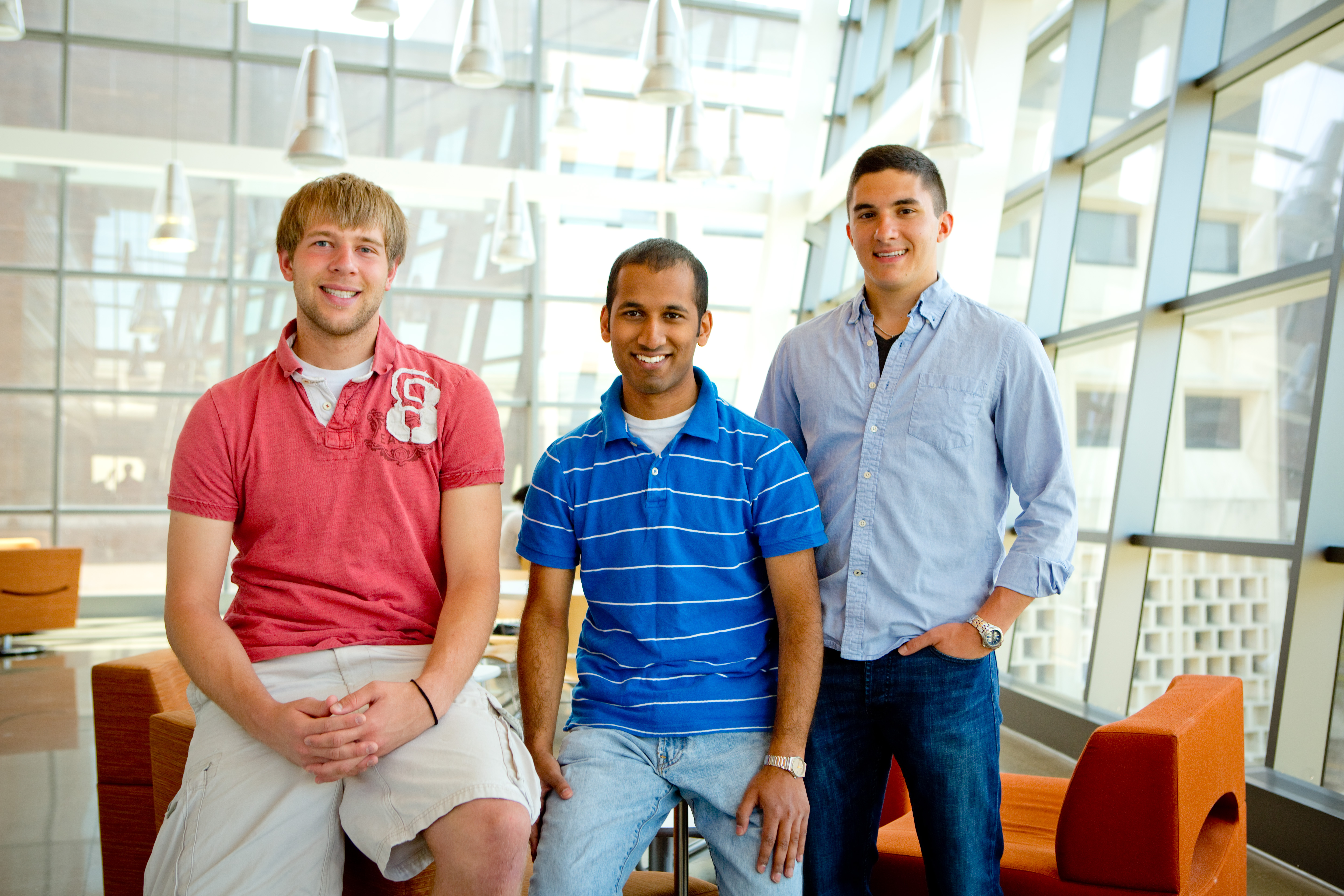 Three UB engineering students, (from left) Steven Brown, Sourobh Ghosh and Daniel Salem, have received full scholarships to study for their PhDs at MIT.