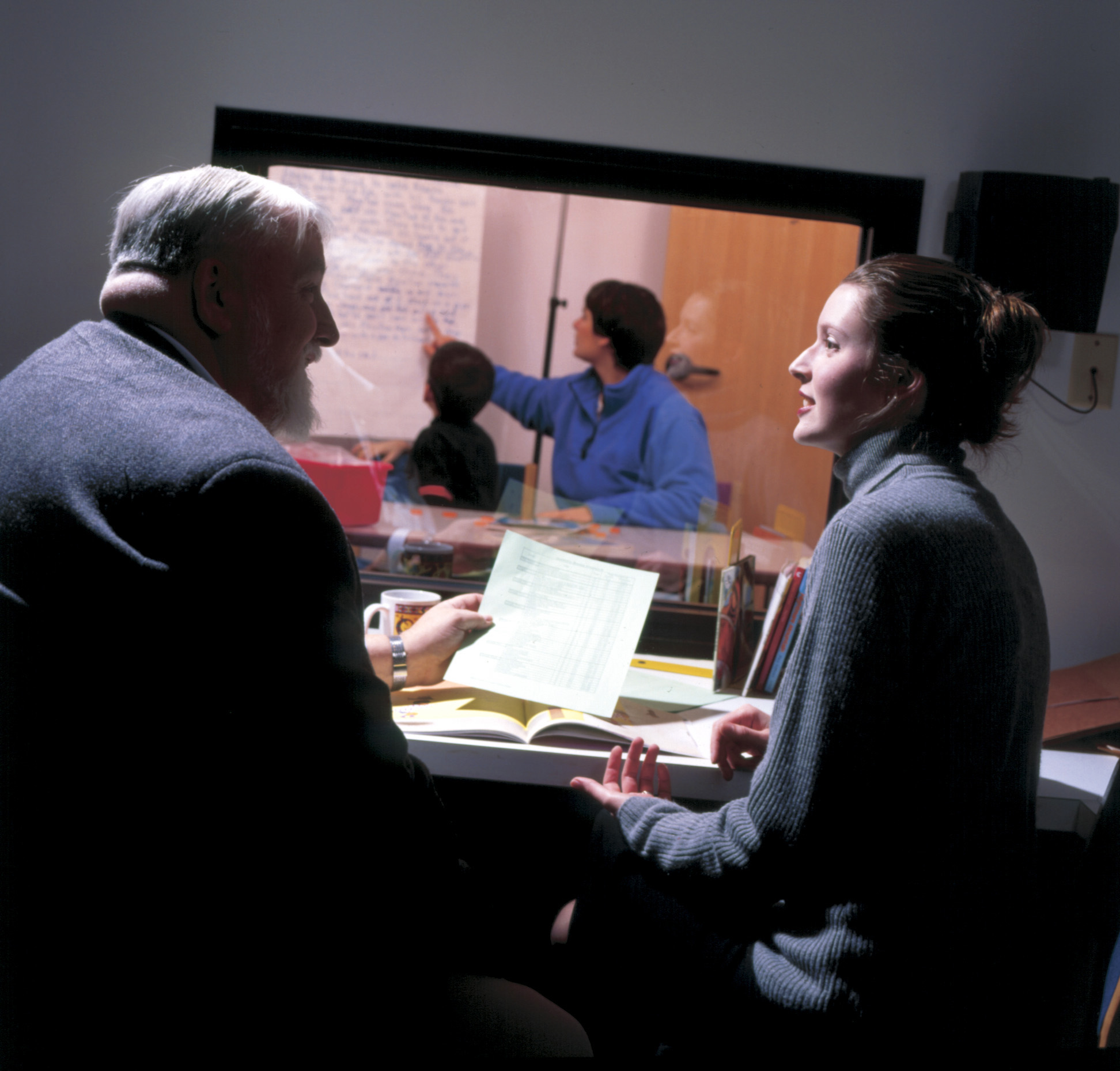 Michael Kibby, PhD, professor emeritus of learning and instruction, with a graduate student observing a child learning to read