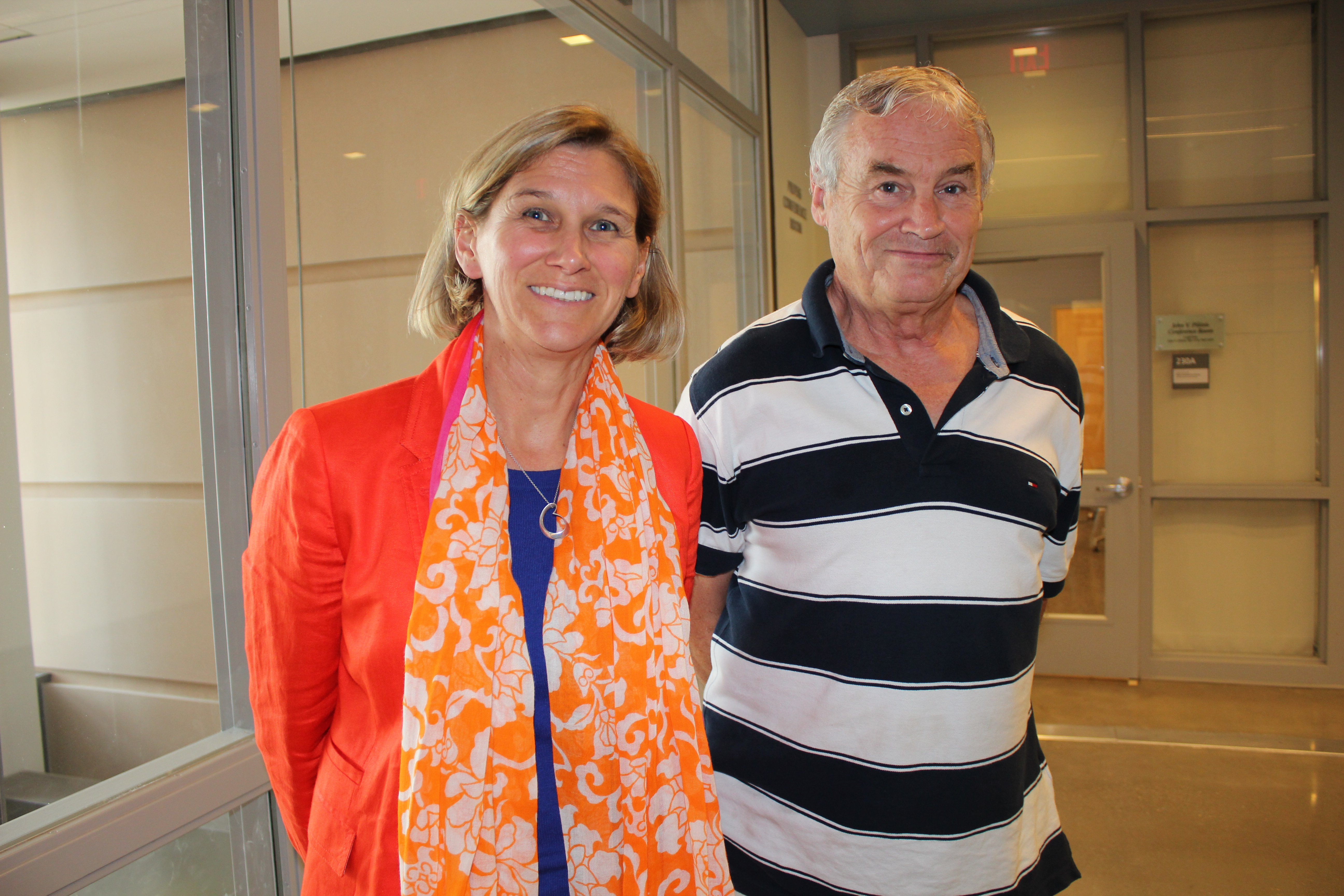UB Engineering Dean Liesl Folks is drawing on the shadowing experiences of UB alumnus Michael Hooven (right) to increase undergraduates’ opportunities for real-world learning.