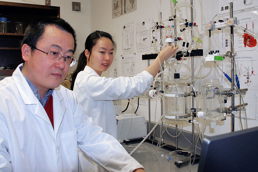 Research by UB assistant professor of pharmacology and toxicology Ji Li (left) and Jingying Wang, formerly of Li’s lab, with collaborators at Yale, may result in a novel approach to reduce the severity of heart attacks in the elderly.