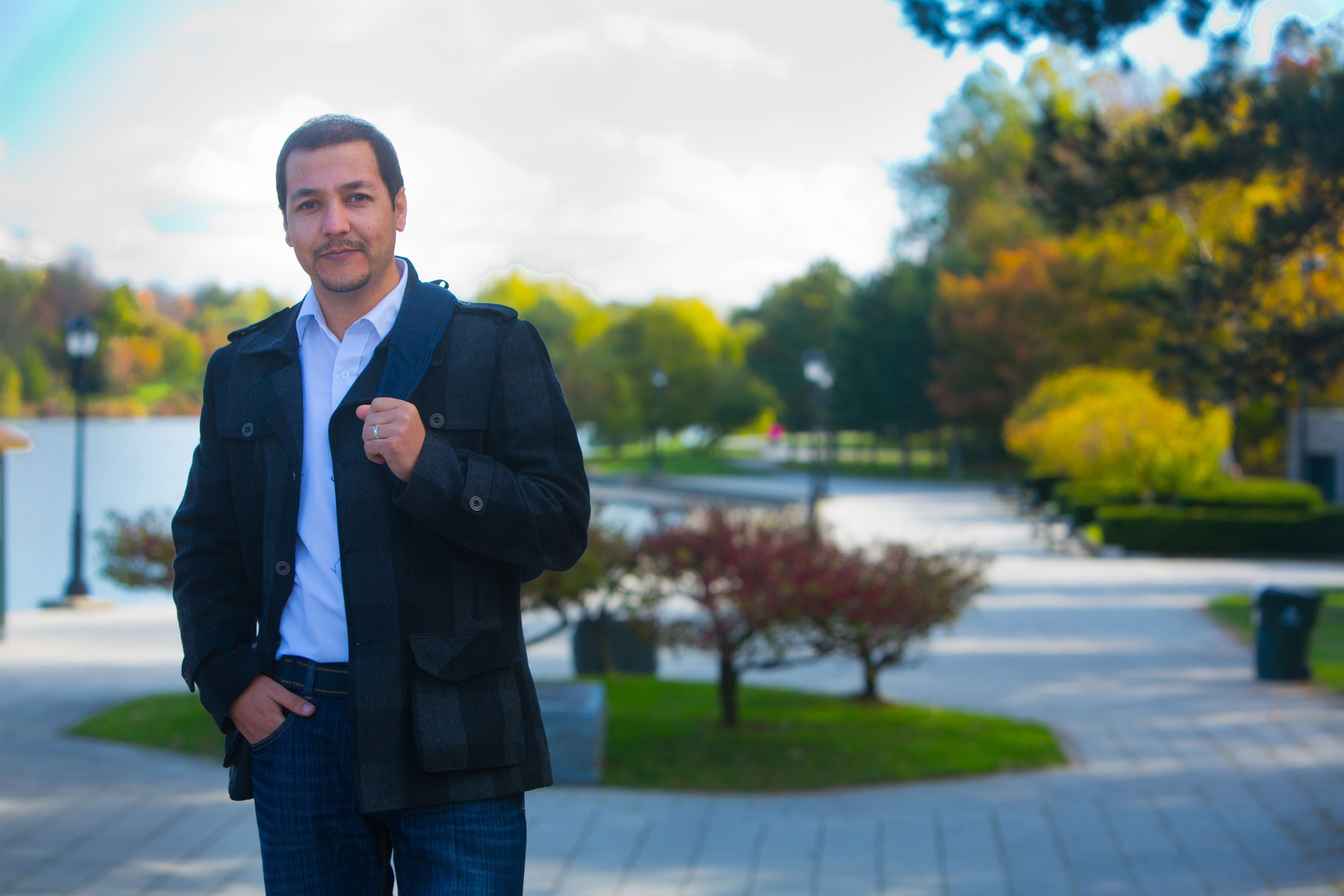 Ahmad Zaki in Delaware Park in Buffalo. Zaki is studying urban planning at UB, and says that a lack of green space is one of many planning problems plaguing Kabul, his home city. Credit: Douglas Levere