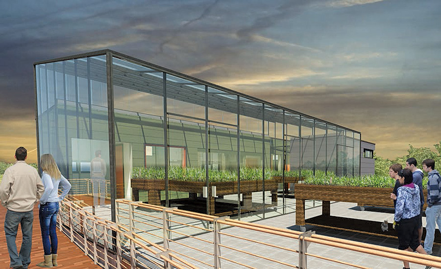 A rendering shows the solar-powered GRoW House, whose features include a 649-square-foot greenhouse where home gardeners can grow vegetables in any weather. Credit: Ned Schelleng, produced in a design studio led by Brad Wales