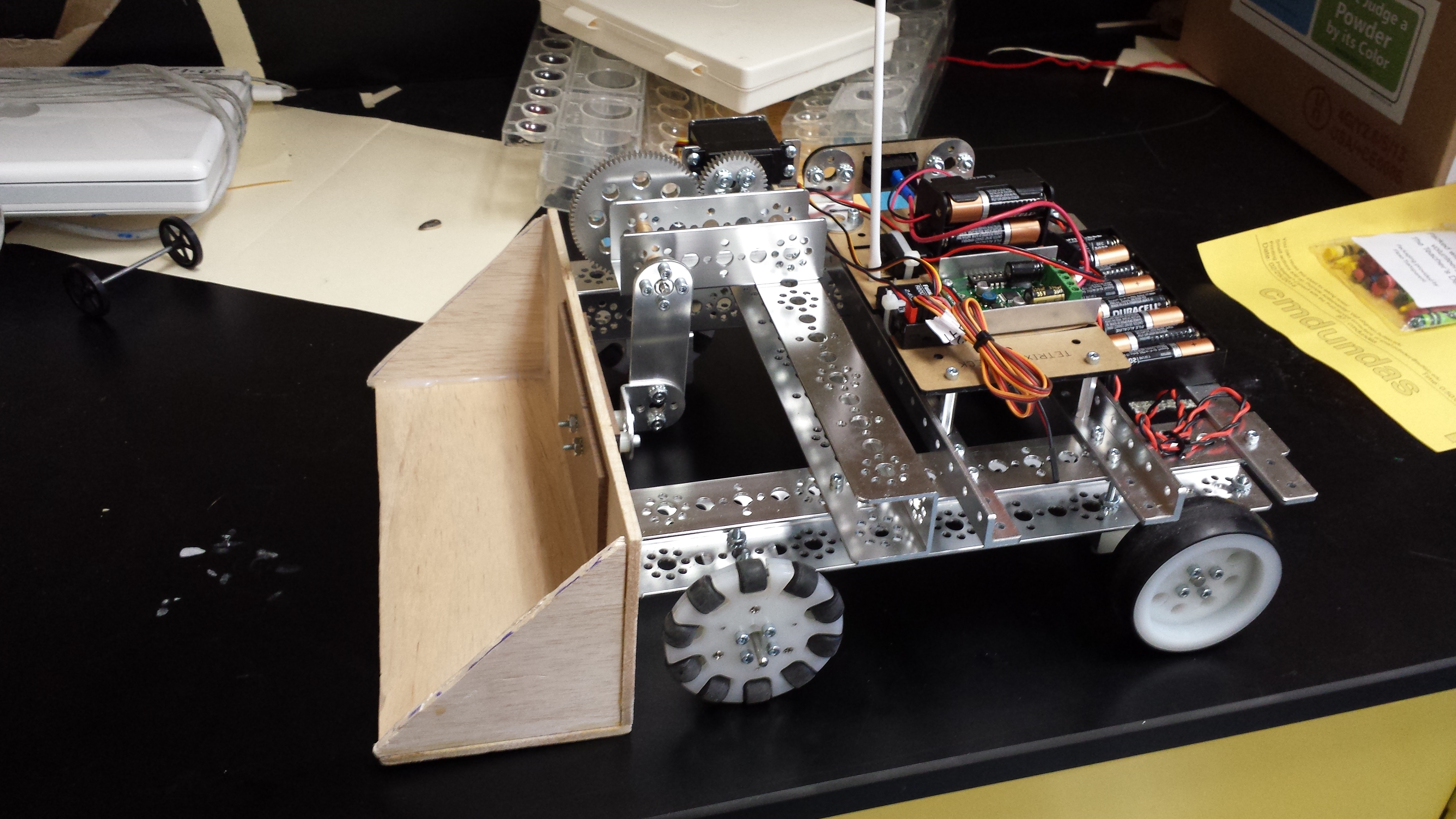 This wheeled robot, which moves small objects from place to place, is one of the student-designed projects expected to be on display at Saturday's science summit. Credit: Stephen Rogers