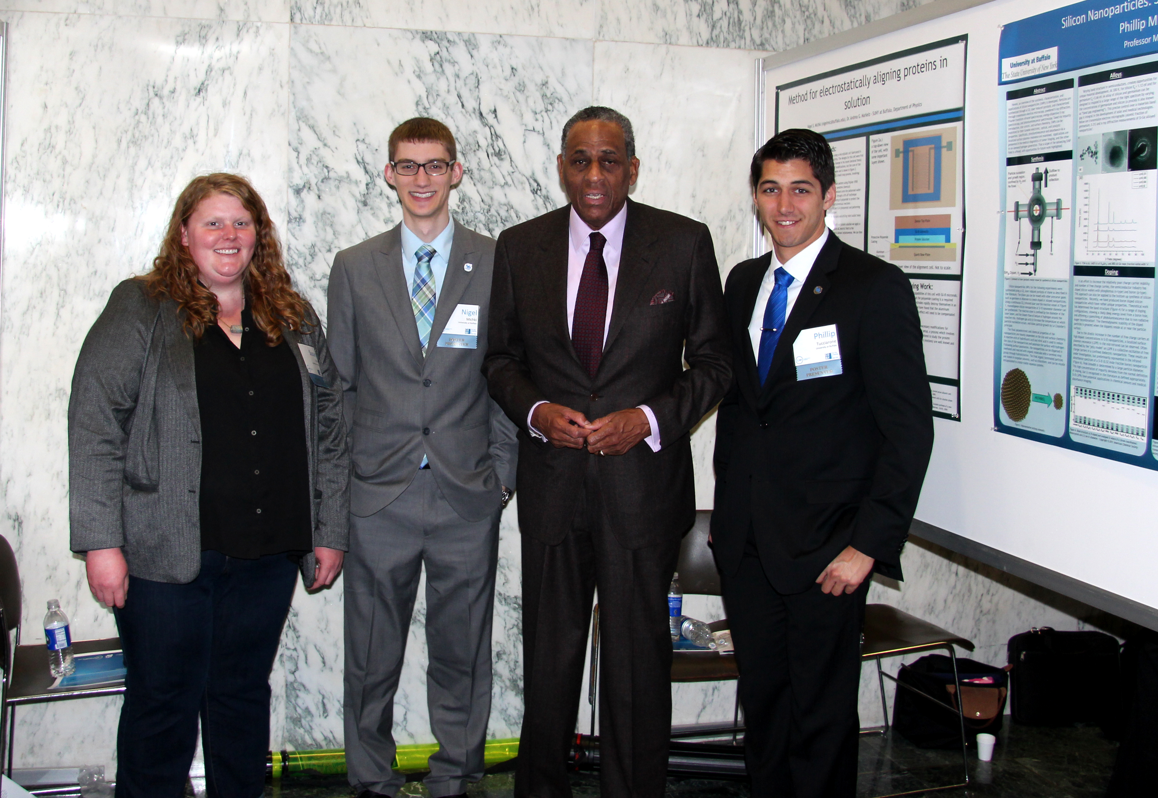 BUFFALO, N.Y. – Three University at Buffalo students presented original research to State University of New York (SUNY) Chancellor Nancy Zimpher, New York State Senator Michael Ranzenhofer and other elected officials on April 1 in Albany.