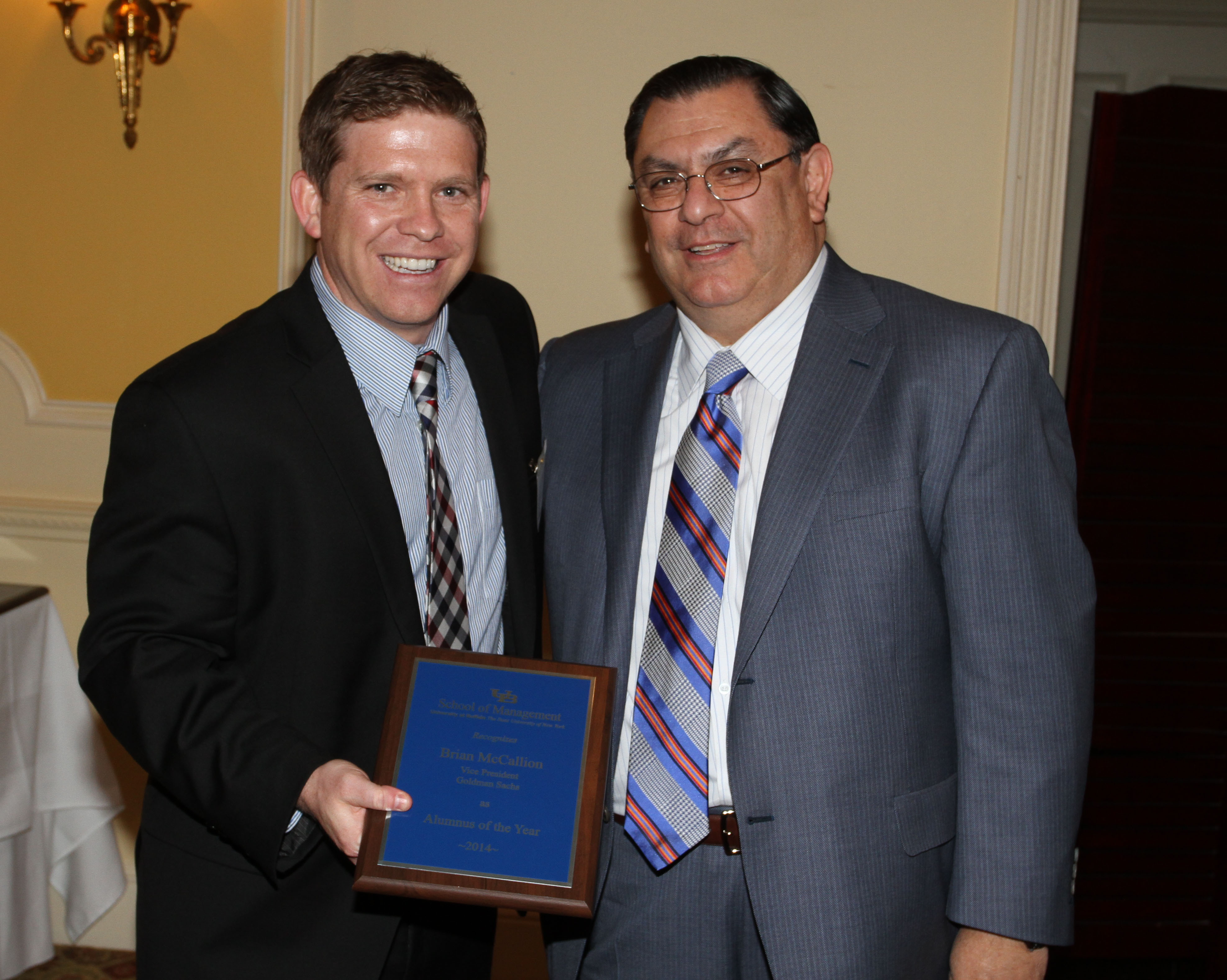 Brian McCallion ’01, vice president in the Controllers Department within the Finance Division at Goldman Sachs, was named the Career Resource Center (CRC) Alumnus of the Year, an honor given to an alumnus who has made a meaningful contribution to the career development of UB School of Management students as a participant in CRC programs or a champion for the school in the business community.
