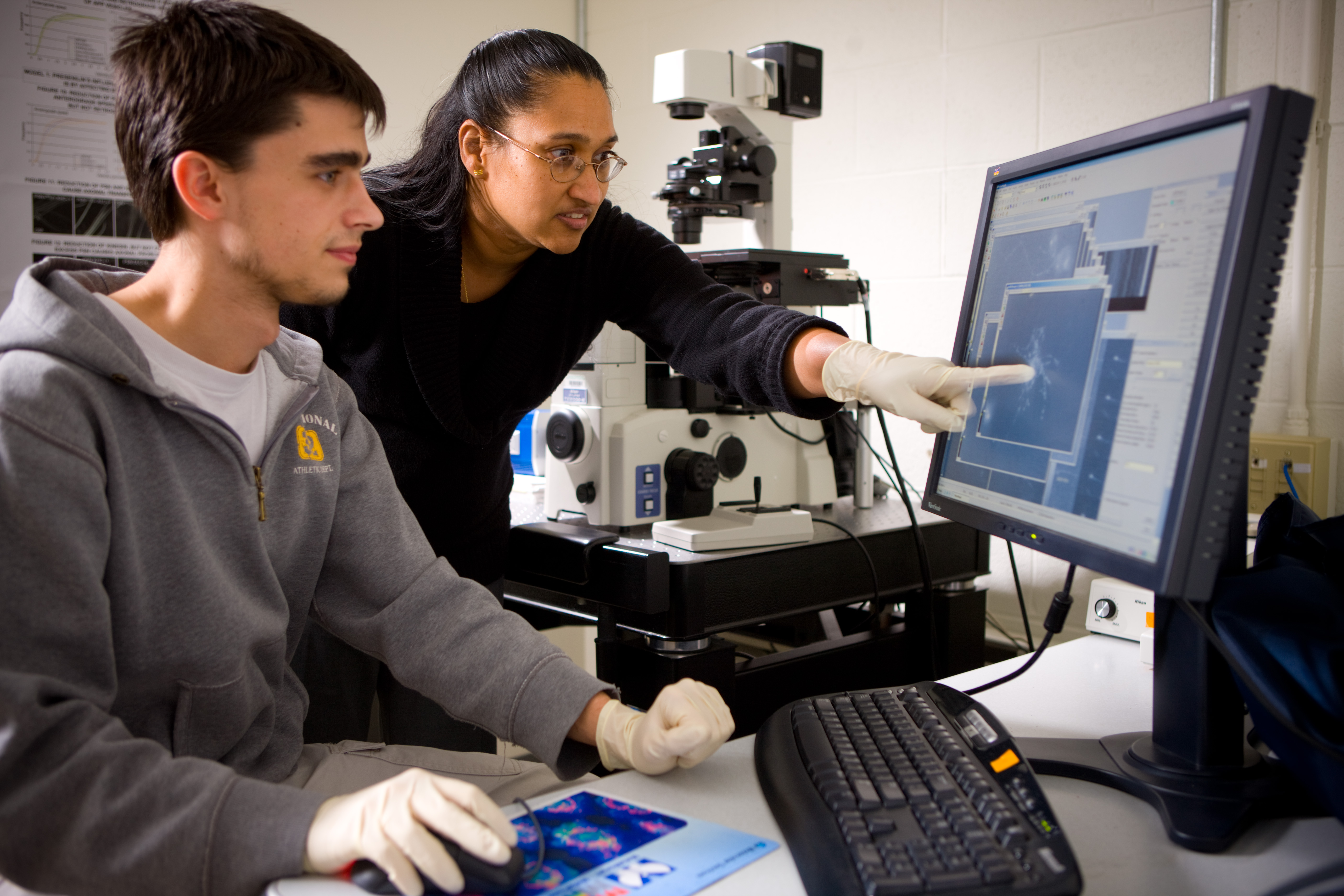 Work by Shermali Gunawardena (right) and graduate student Gary Iacobucci has found that brain blockages in fruit flies can form and dissolve in less than 30 seconds, which may lead to the development of new drugs to treat neurological diseases.