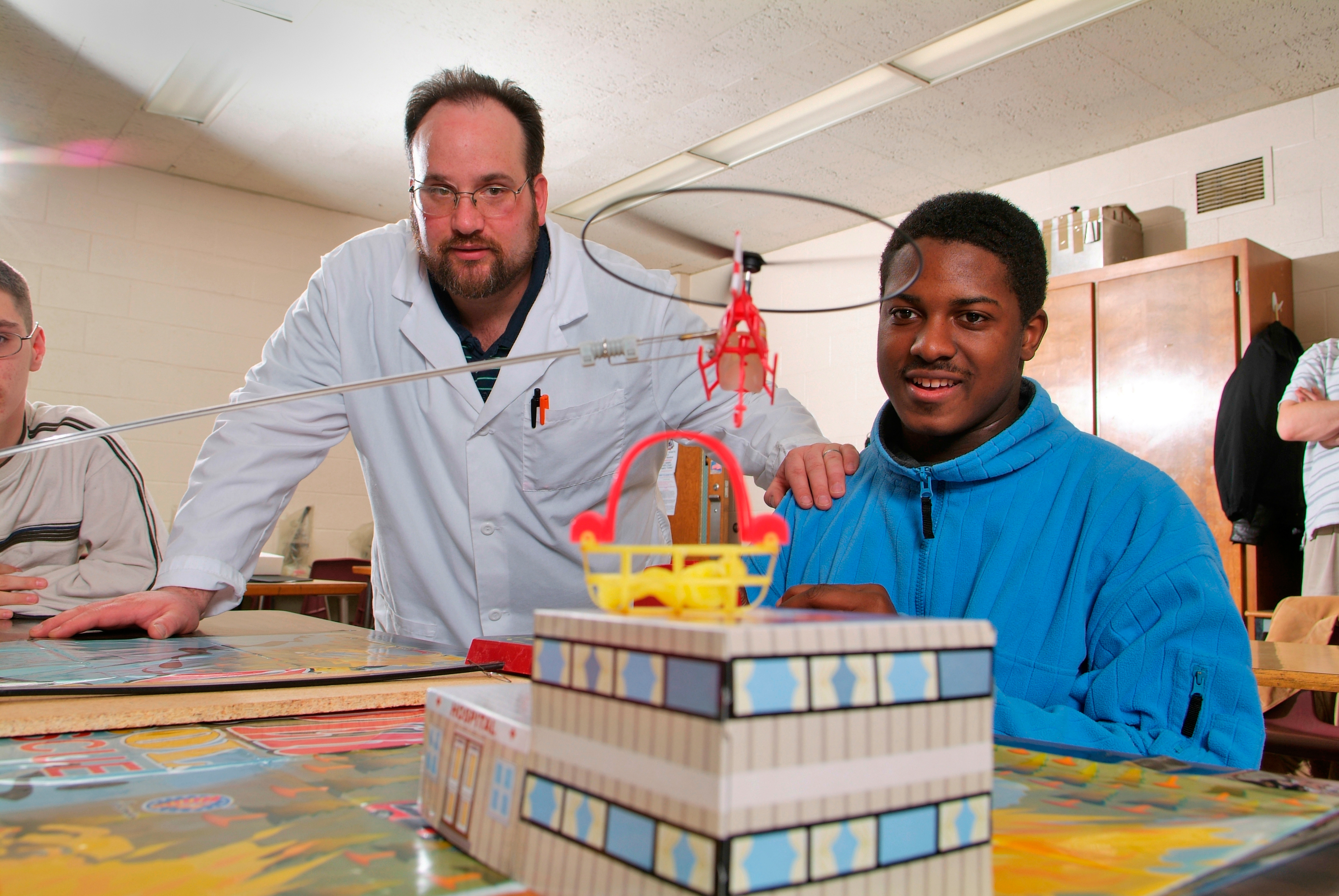 Praxair has sponsored numerous University at Buffalo programs, including Buffalo-Area Engineering Awareness for Minorities, that promote STEM education. Here, an engineer works with a Buffalo Public Schools student. Photo: Douglas Levere