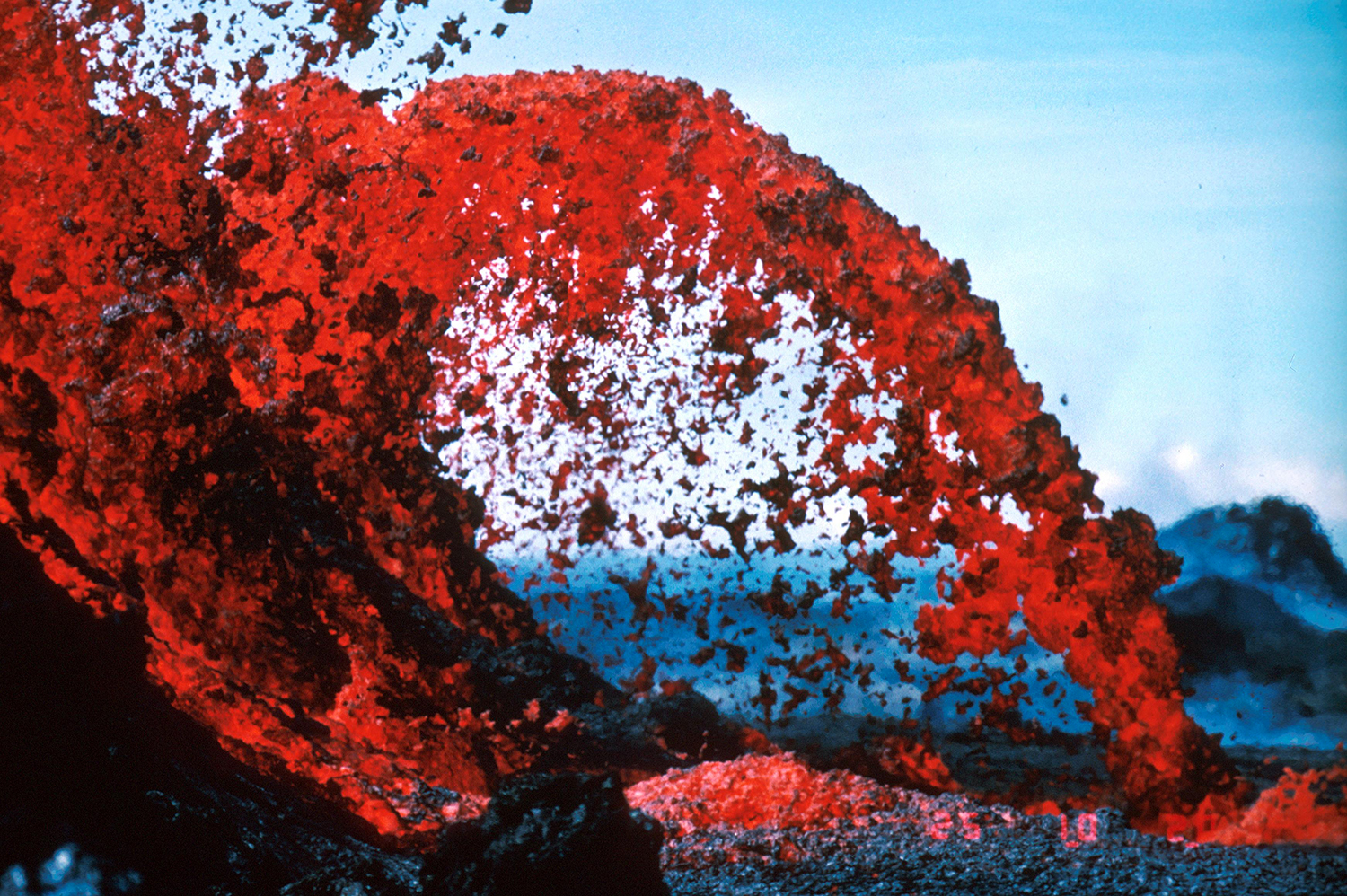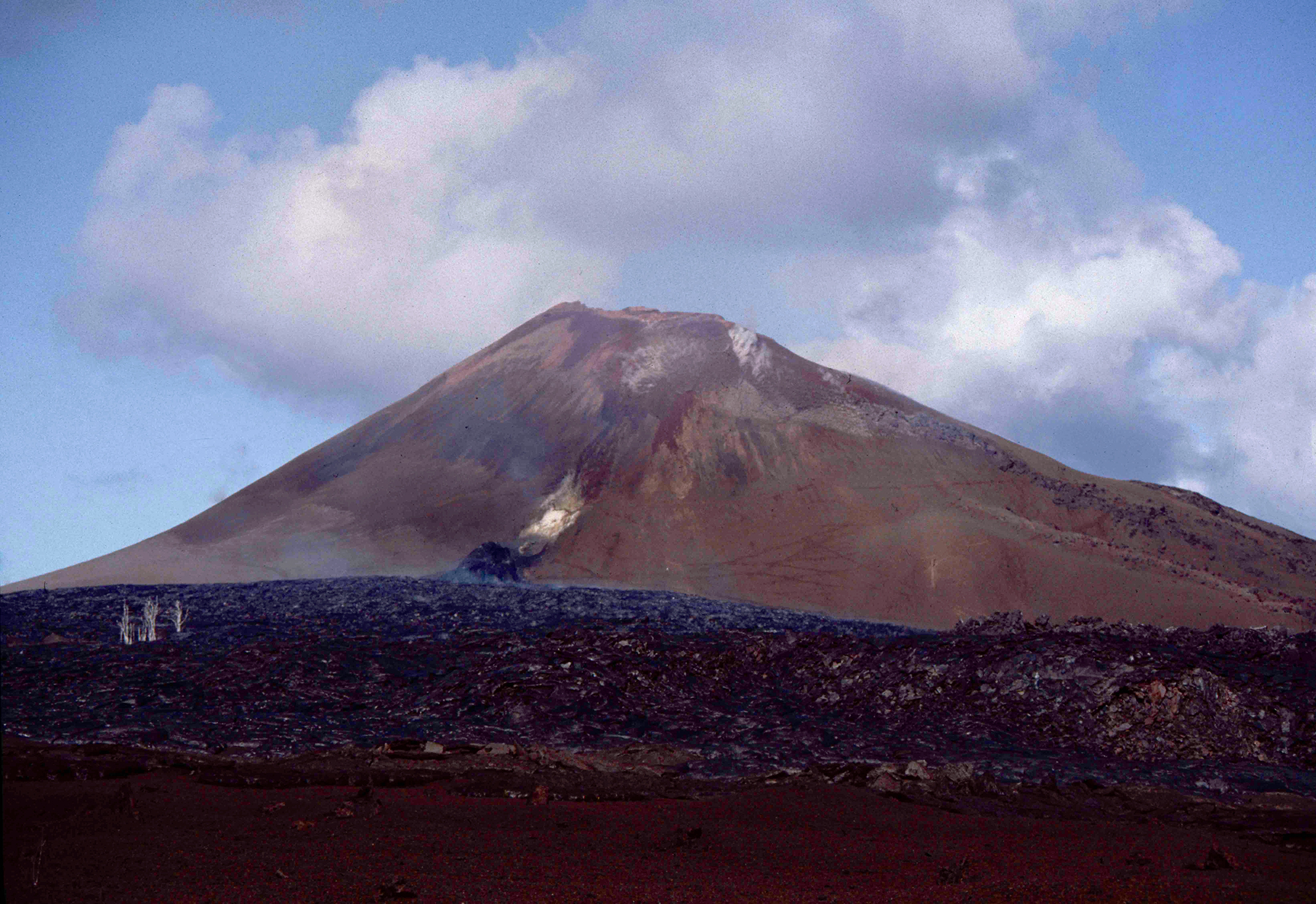 Pu’u ‘Ō’ō, a cinder and spatter cone in Kīlauea’s east rift zone, pictured in 1992. Credit: Laszlo Kestay/U.S. Geological Survey