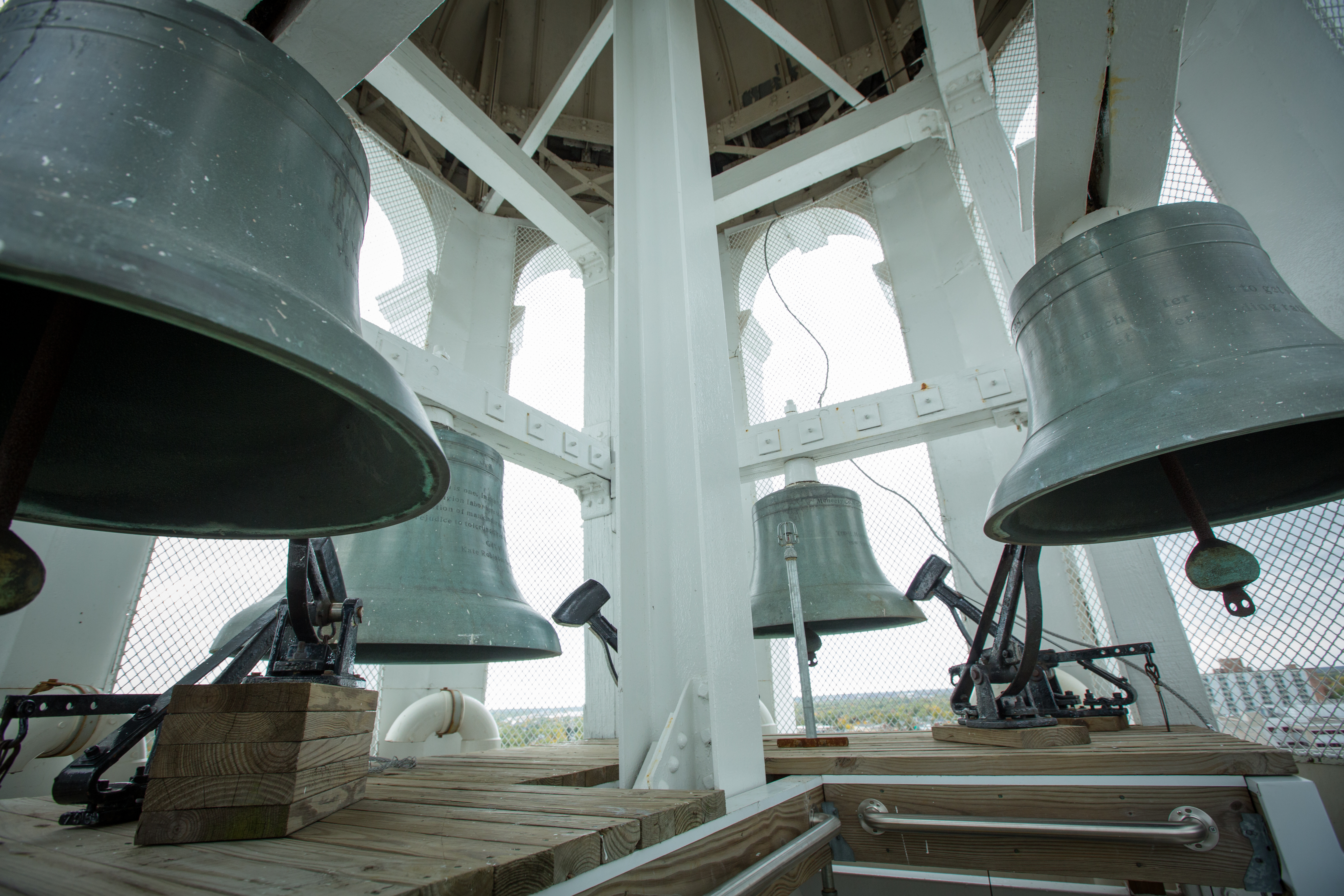 Two of the four bells in the Hayes Hall clock tower. Credit: Douglas Levere