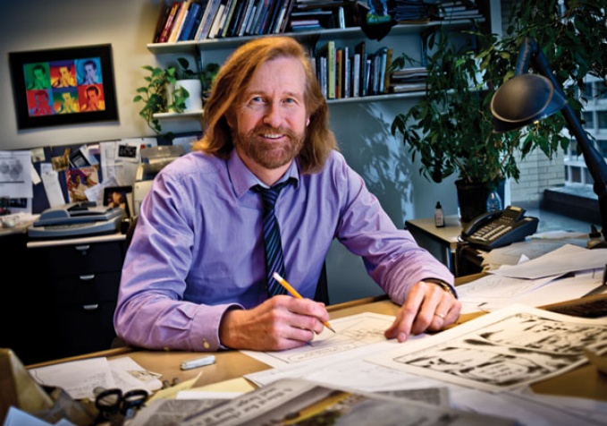 “Editorial cartooning is the platypus of journalism. An improbable aggregation of information, politics, art, humor and opinion, with venom,” says Toles. “I get up every day and ask myself, ‘What needs saying?’ followed by ‘How can I best say that?’ It is demanding and controversial and difficult, and a damn lot of fun.”