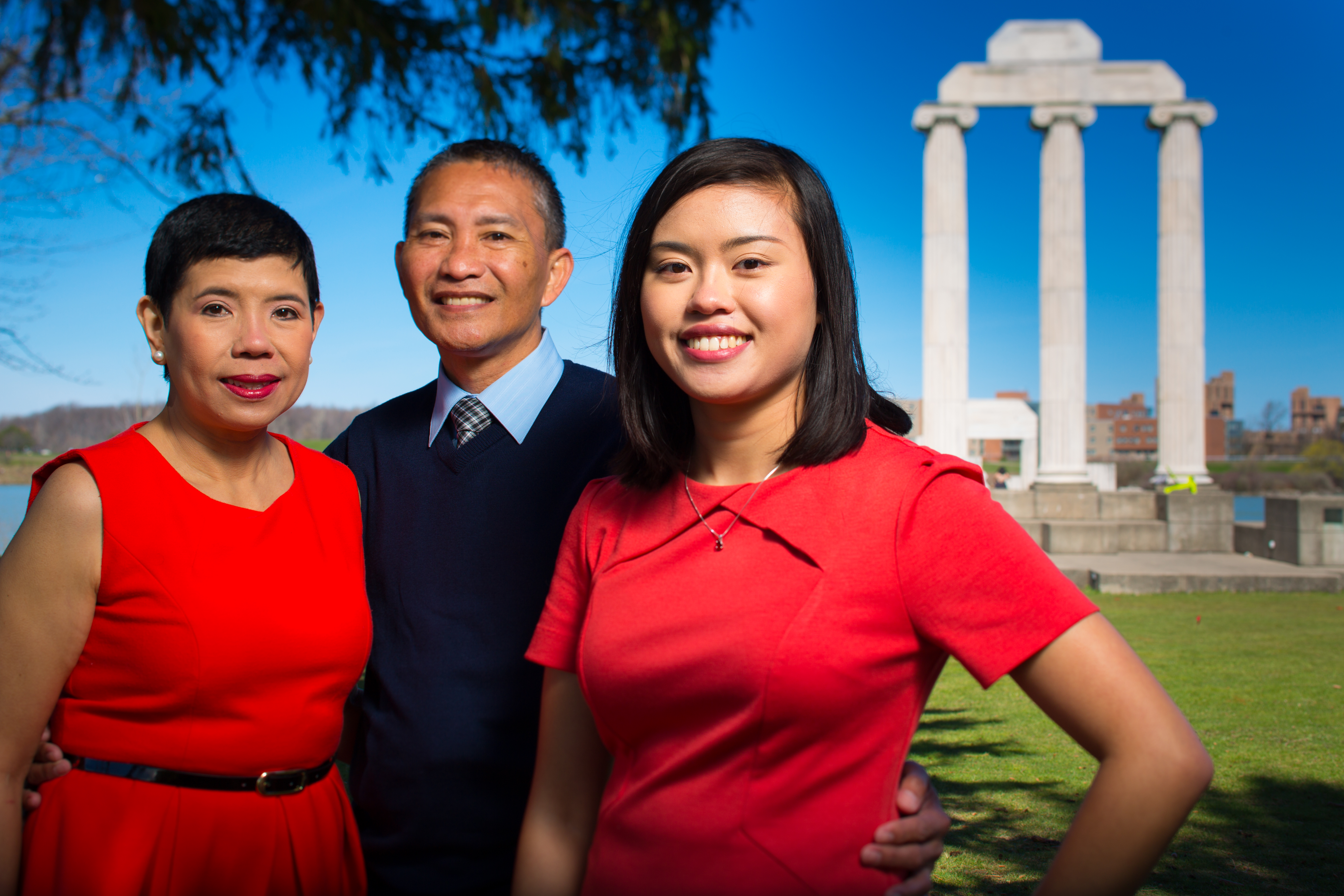 UB senior Paula Bianca Lazatin (right), a Finish in 4 participant, is graduating with a triple major in political science, international studies and German. She is pictured with her mother, Guia Lazatin (left) and her father, Emmanuel Lazatin (center).