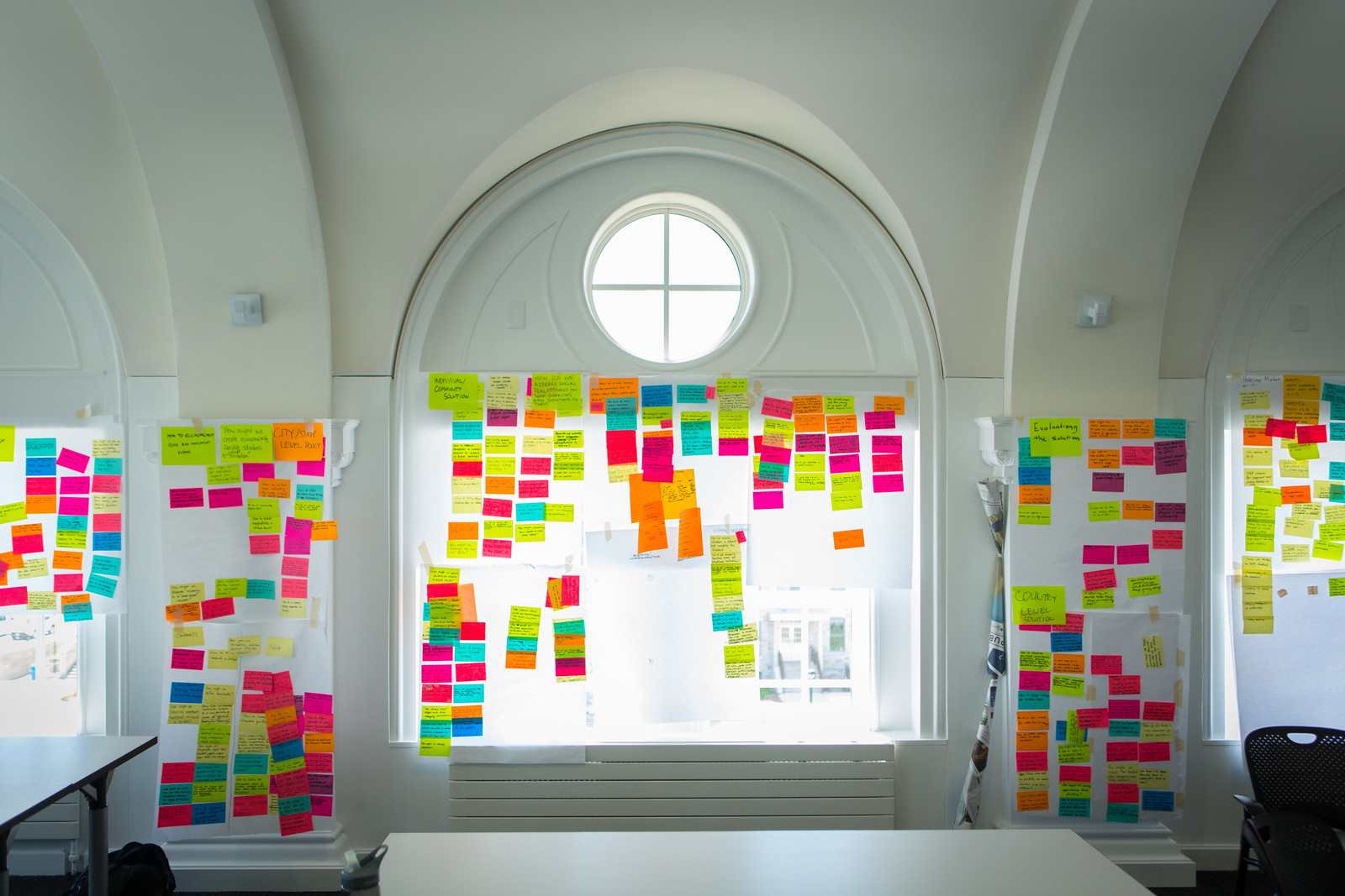 This colorful collection of Post-it notes reflects the ideas University at Buffalo students brainstormed during the Global Innovation Challenge. Photo: Douglas Levere