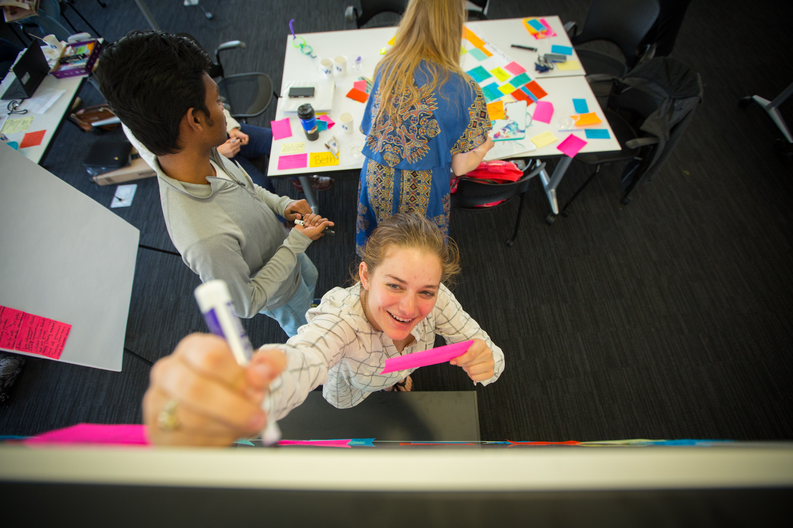 University at Buffalo student Beth Mercer writes down an idea during the Global Innovation Challenge. Photo: Douglas Levere