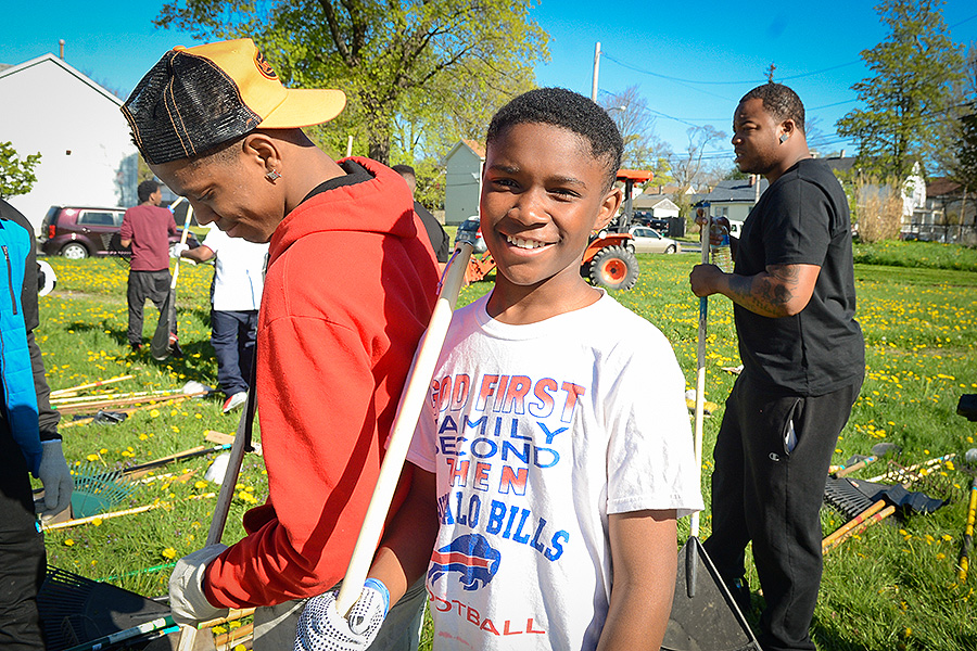 Buffalo Public Schools eighth-graders Sevehn Venable and Devahn Carson participate in the 15th annual Fruit Belt Clean-a-Thon and Festival in June. The event serves as the culmination of the Community as Classroom program offered at Futures Academy by UB's Center for Urban Studies. Photo: Nancy J. Parisi