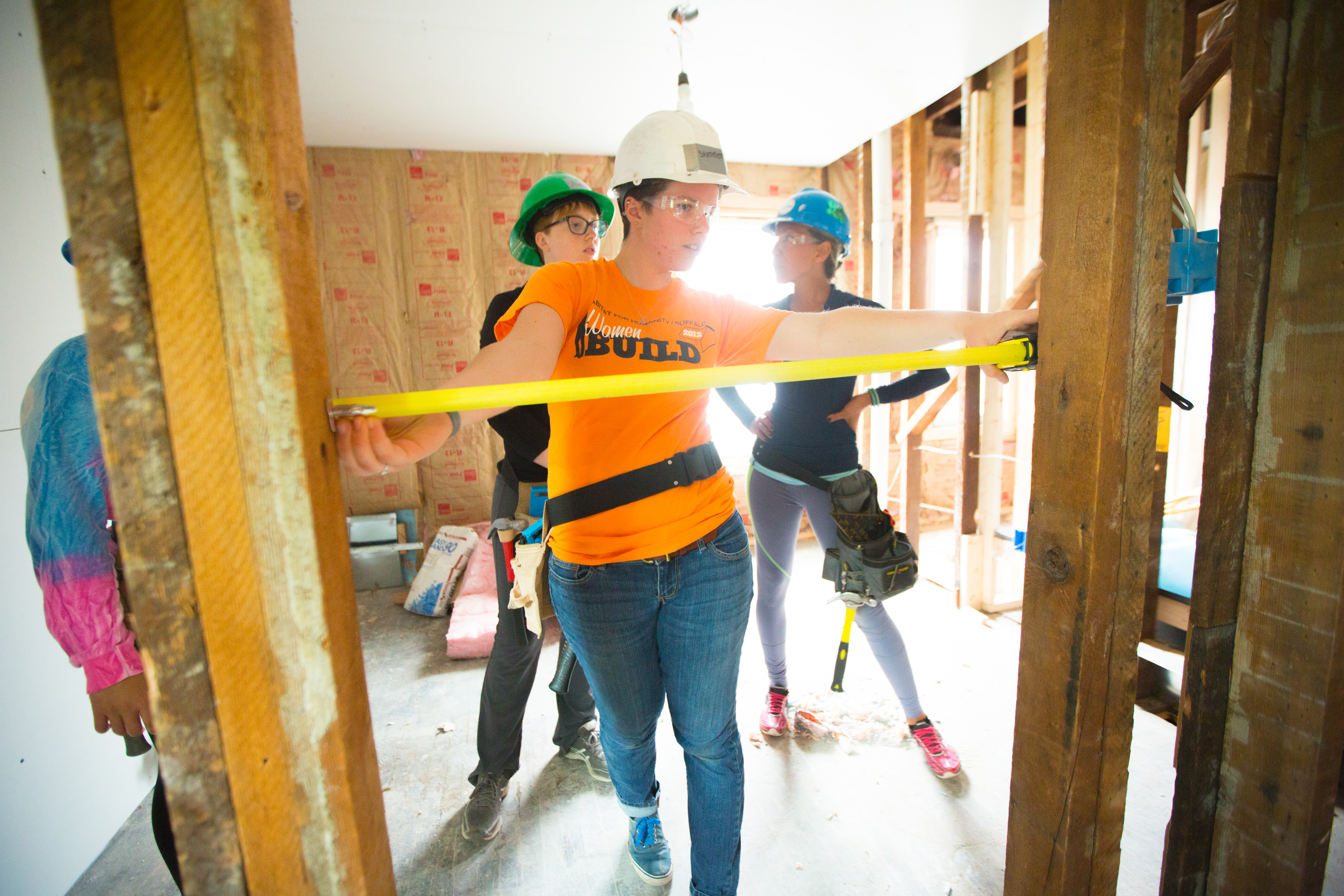 University at Buffalo architecture and planning students work on a Habitat for Humanity home on Buffalo's East Side in June 2016. Photo: Douglas Levere