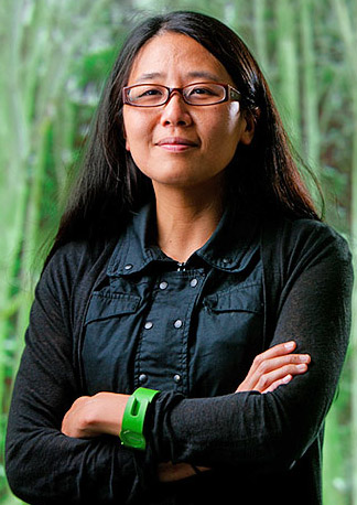 Joyce Hwang, associate professor of architecture at the University at Buffalo, stands in front of Bower, her latest animal architecture installation, at Artpark in Lewiston, N.Y.