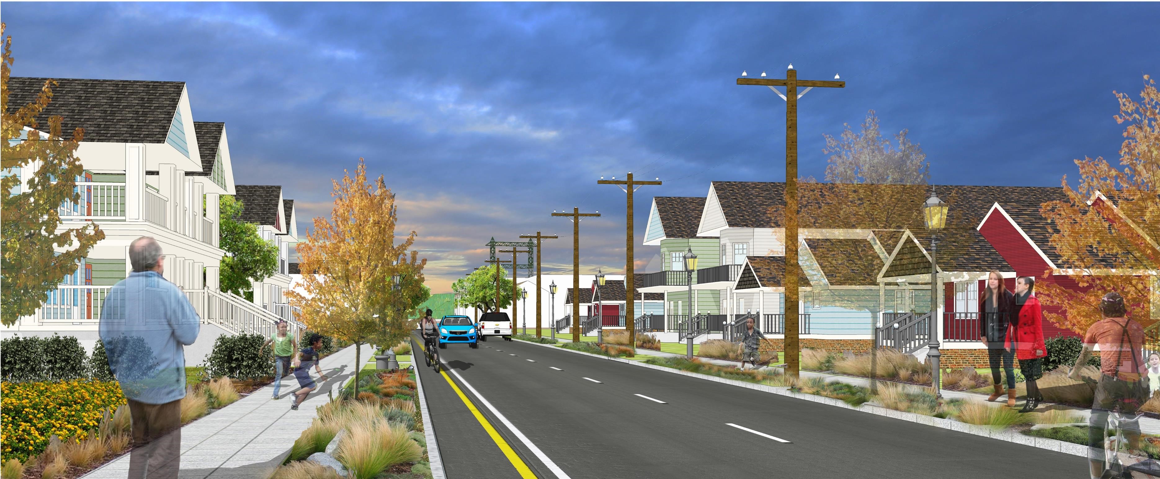 Founded on the urban design principles of walkability, accessibility, healthy living and pedestrian-scale development, the Bailey Green plan outlines a mix of affordable housing, retail, recreation, community gardens, green infrastructure and streetscape improvements.
