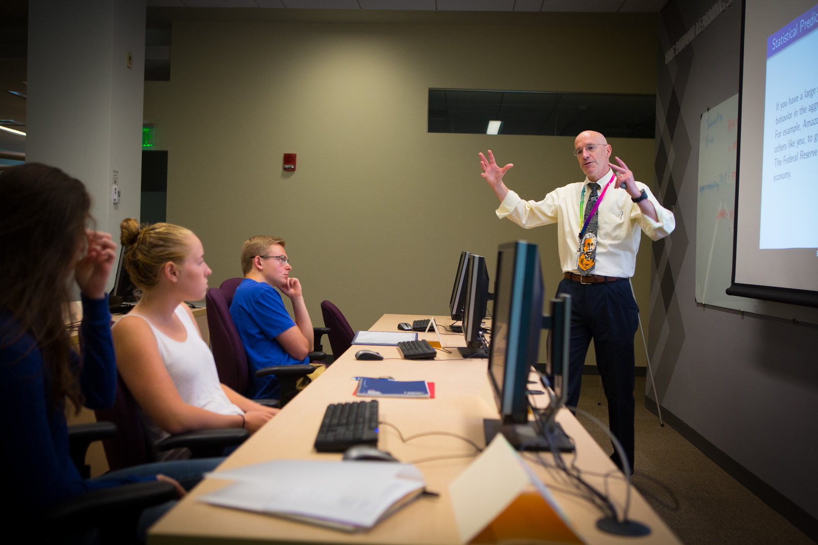 E. Bruce Pitman speaks to students at the 2015 Eric Pitman Annual Summer Workshop in Computational Science. Credit: Douglas Levere.