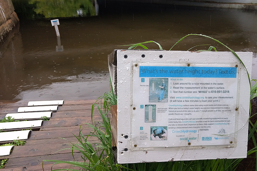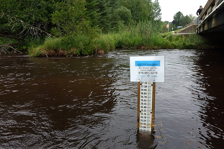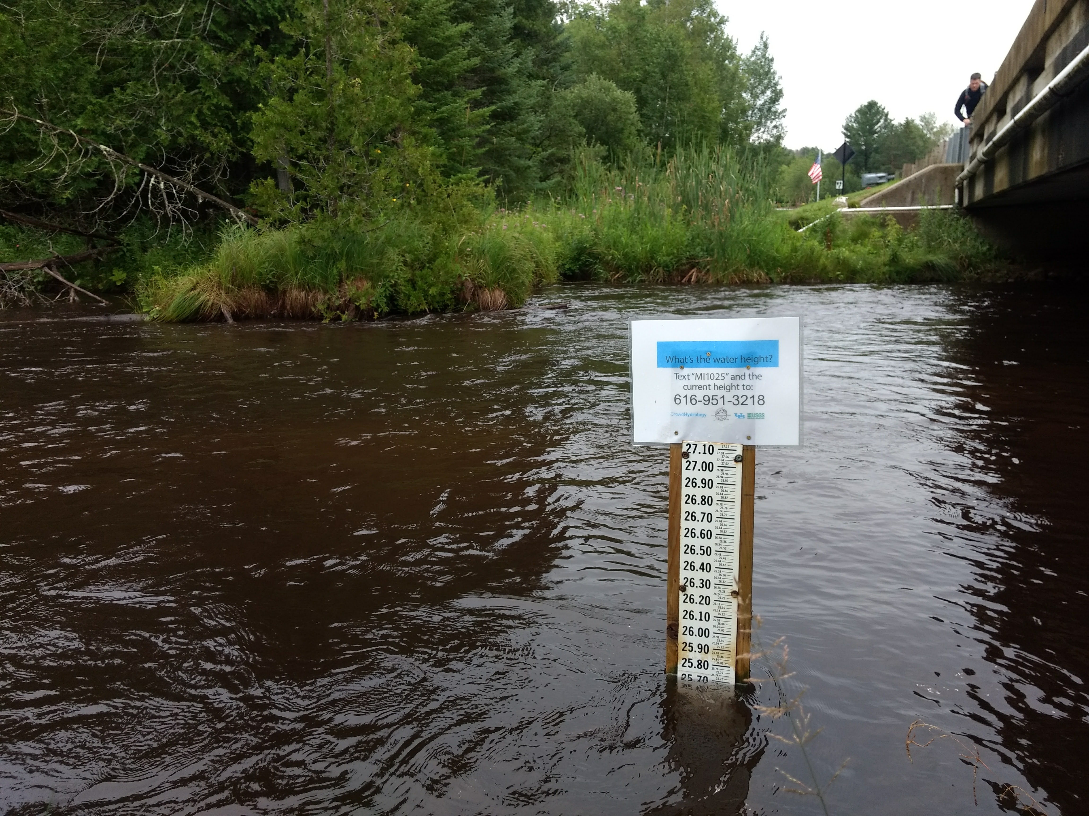 The pilot location is the Boyne River in Michigan, where researchers have set up five citizen science stations that feature stream height gauges, with temperature gauges to be installed in the fall. Three additional state-of-the-art gauges will collect similar data at other spots along the Boyne.