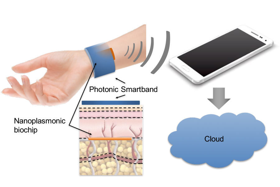 The sensor, which will be designed to detect lung cancer biomarkers in blood, will only collect data when triggered by light emitted by a network of nanophotonic devices integrated in a smart wrist band the team is also developing. The wrist band will then collect from the sensor data that it will send via Bluetooth to a smartphone or computer.