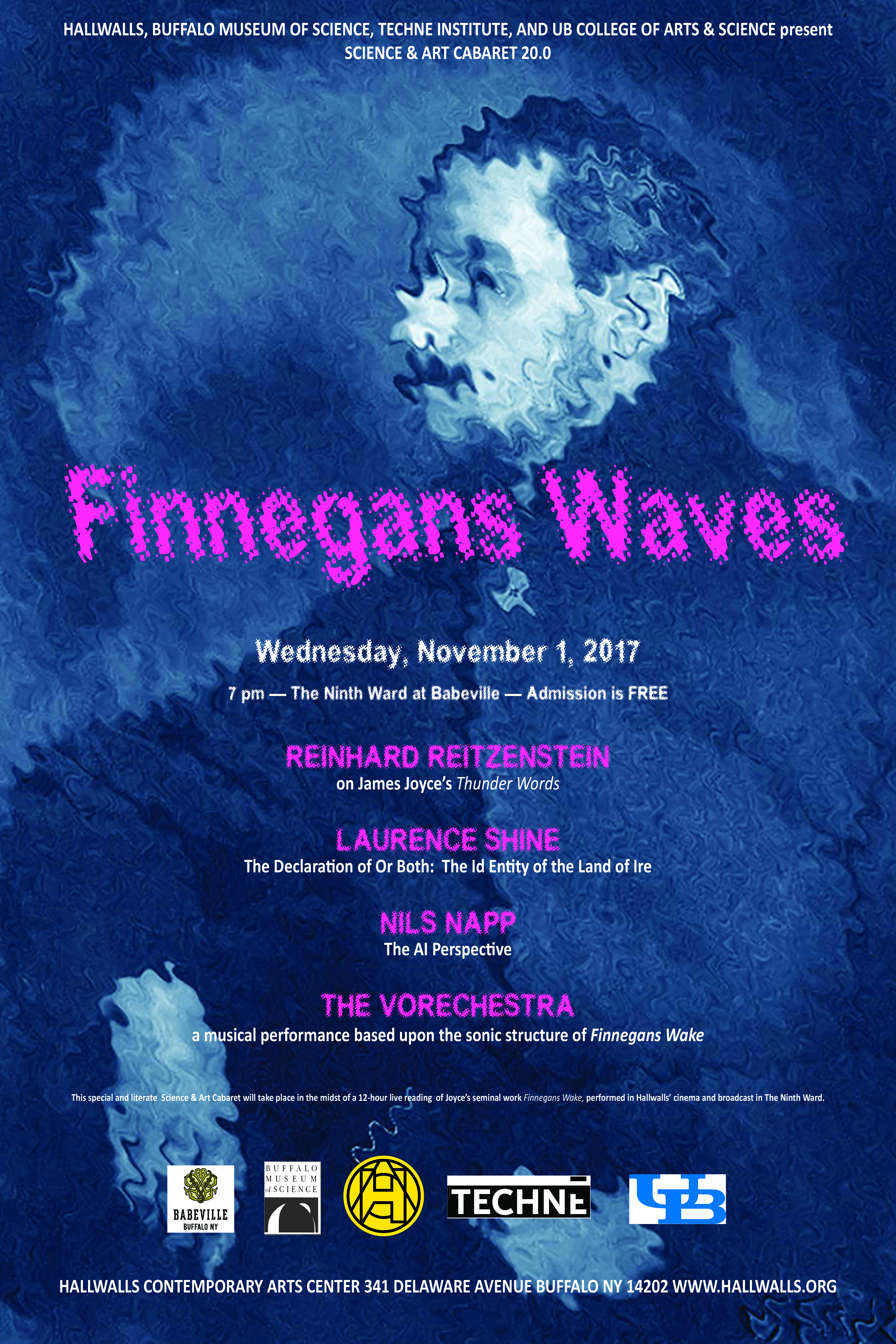 The larger Finnegans Waves event that includes the 12-hour reading is produced by the Technē Institute with support from Hallwalls Contemporary Arts Center and the UB Department of Theatre and Dance.