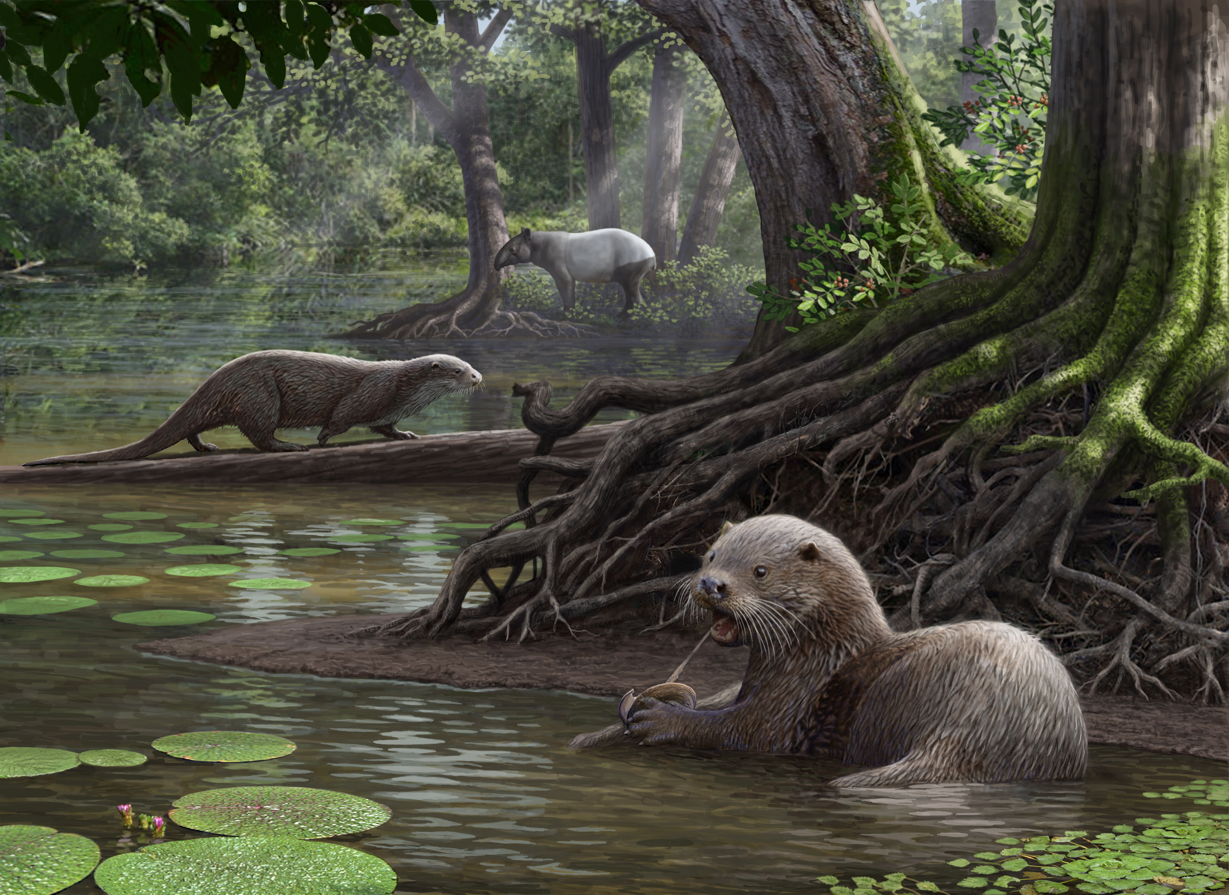 In this wet and forested environment, the otter’s jaw power could have given it an edge over predators that could not hunt in water or smash the shells of aquatic prey.