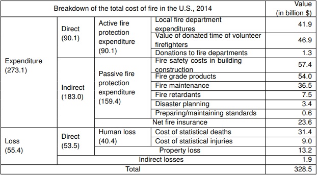 · The total cost of structural fire in the U.S. states has increased by 50 percent from 1980 to 2014, from $218.5 billion to $328.5 billion (both in 2014 dollars).