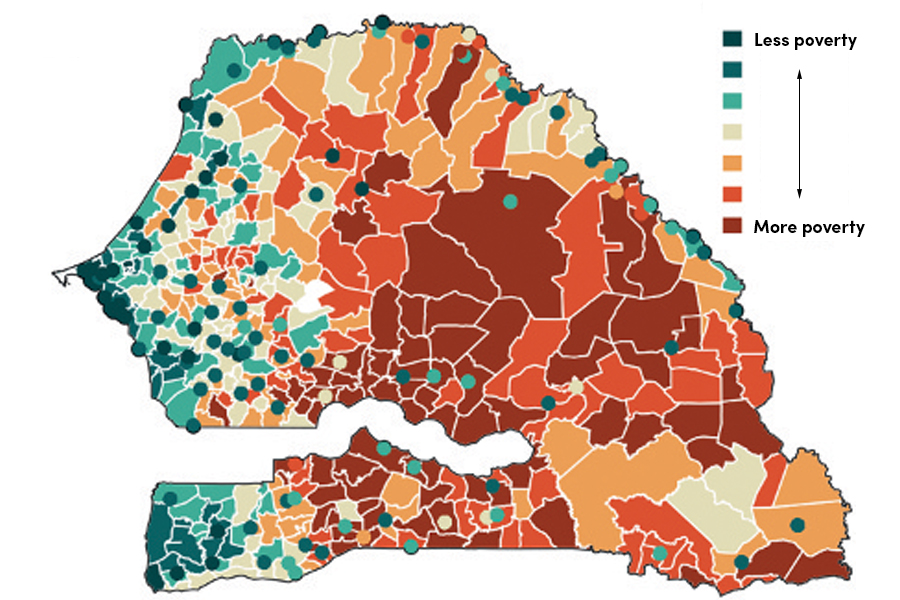 Using the framework, the researchers created maps detailing the poverty levels of 552 communities in Senegal. Current poverty maps divide the nation in four regions. The framework also can help predict certain dimensions of poverty such as deprivations in education, standard of living and health.