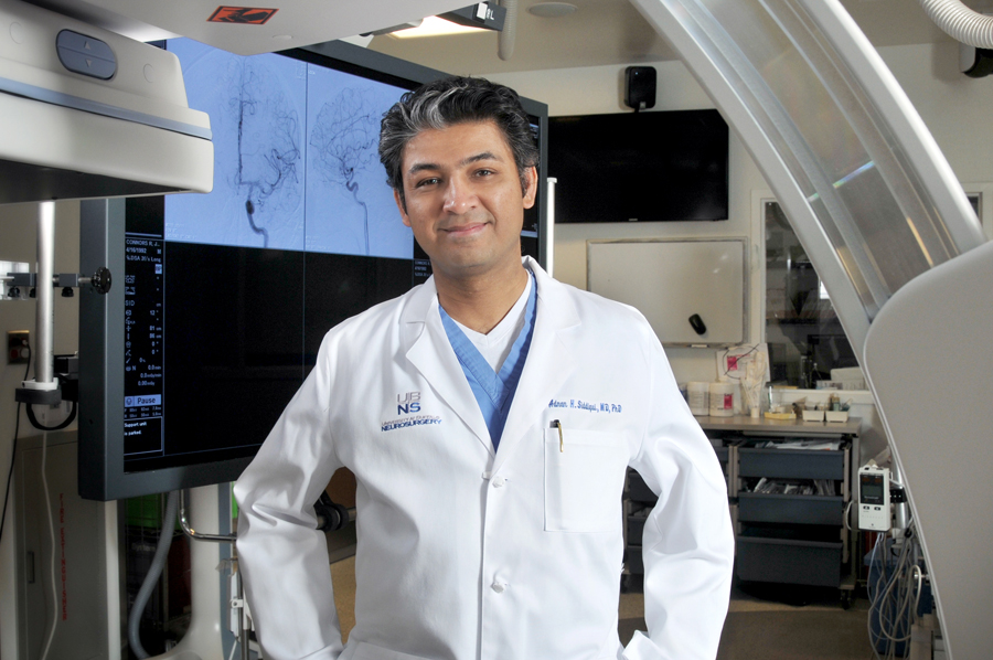 The independent, prospective, multi-center, randomized trial was led by a team of three investigators: Adnan Siddiqui, MD, PhD, professor of neurosurgery in the Jacobs School of Medicine and Biomedical Sciences at the University at Buffalo, medical director of neurosurgical stroke service, Kaleida Health, and chief medical officer at the Jacobs Institute; Aquilla S. Turk, DO, the trial’s principal investigator and director of the neurointerventional surgery section in the departments of Radiology and Neurosurgery at the Medical University of South Carolina; and J. Mocco, MD, vice chair of neurosurgery and director of the Cerebrovascular Center at the Icahn School of Medicine at Mt. Sinai.