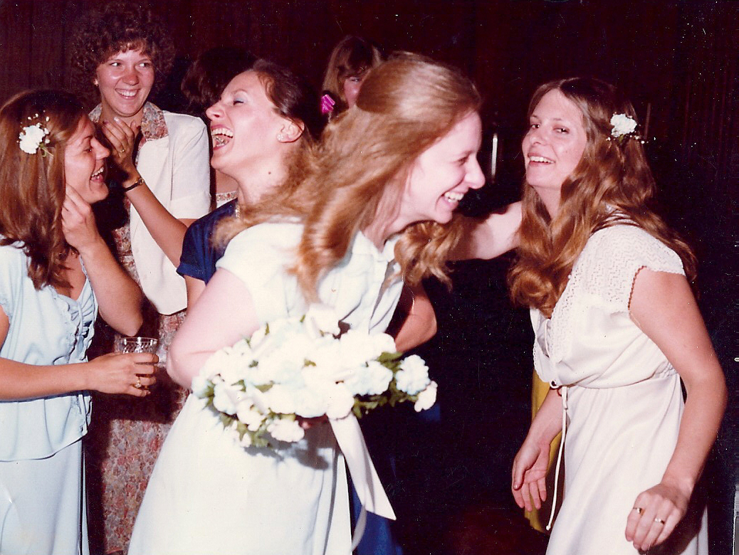 From left: Nancy Lander, Helen Quataert, Daria Marusevich, Kate Rittenhouse (front center) and Robin Rittenhouse on Robin's wedding day. It's Robin's second attempt (successful this time!) to have Kate catch the wedding bouquet.