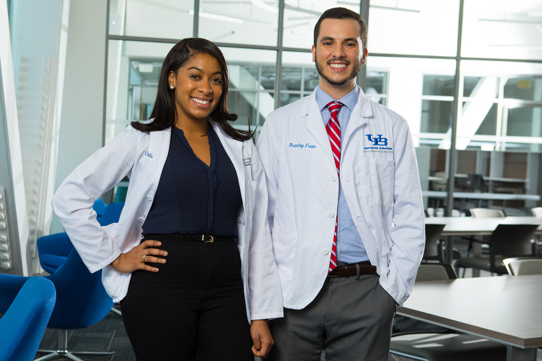 University at Buffalo medical students Karole Collier and Bradley Frate are part of a statewide effort to change that. Both students in the Jacobs School of Medicine and Biomedical Sciences at UB were among 10 statewide recipients of the new Diversity in Medicine scholarship first funded by the New York State Legislature in 2017 and renewed in the state budget passed last month. The renewal means that they will have most of their medical school tuition covered for 2018-19. In return, the students must commit to work in a New York State-designated medically underserved community.