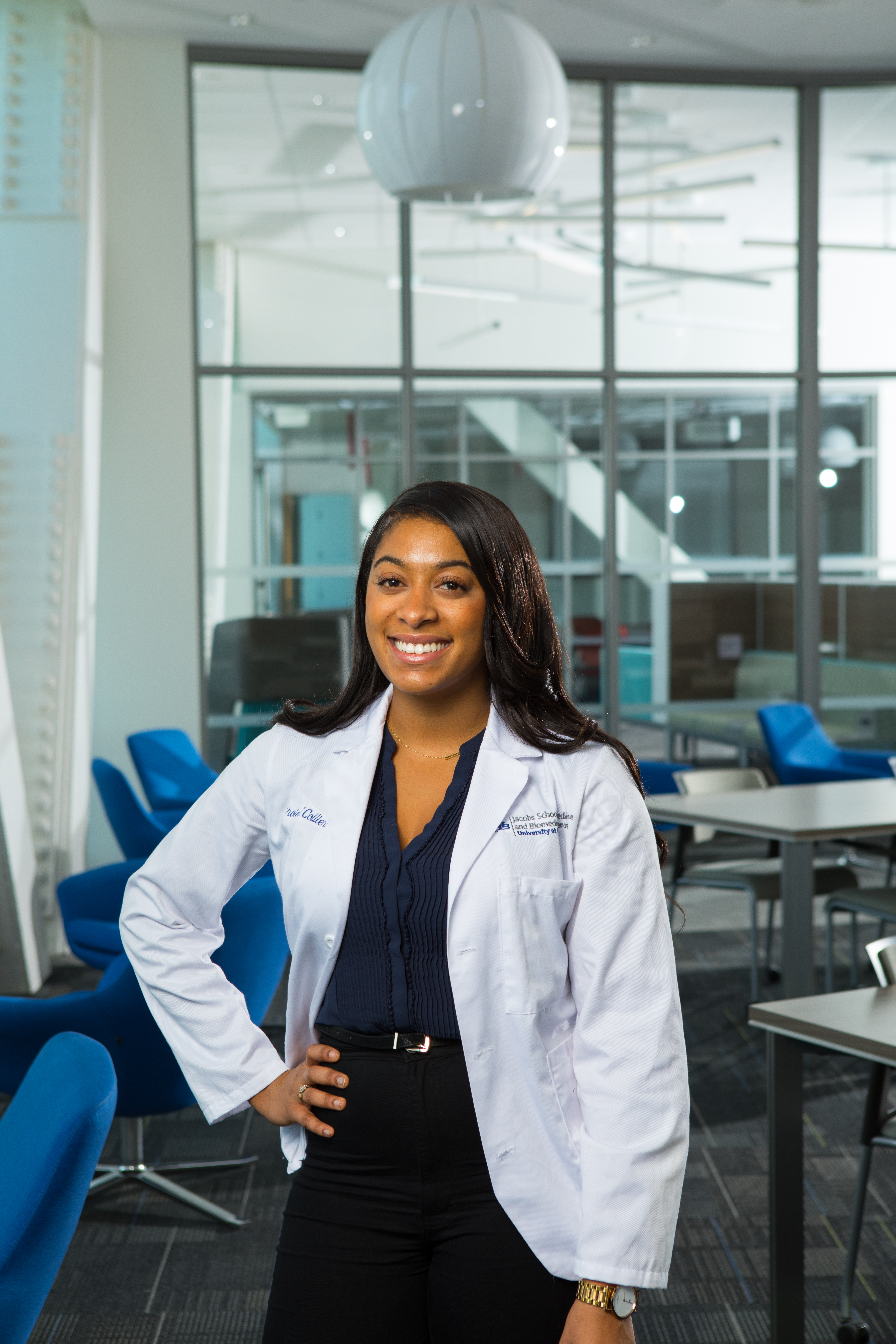 Collier participates in many activities that conduct outreach to Buffalo’s underserved populations. She is president of the UB chapter of the Student National Medical Association (SNMA), the nation’s oldest and largest organization focused on the needs of medical students of color. Its programs are dedicated to ensuring that medical education and services are culturally sensitive and to increasing the number of African-American, Latino and other students of color entering and completing medical school. Collier is also a member of the Diversity and Inclusion Committee and the Task Force for Student Academic Environment, which is conducting a self-study for the school’s Liaison Committee on Medical Education accreditation.