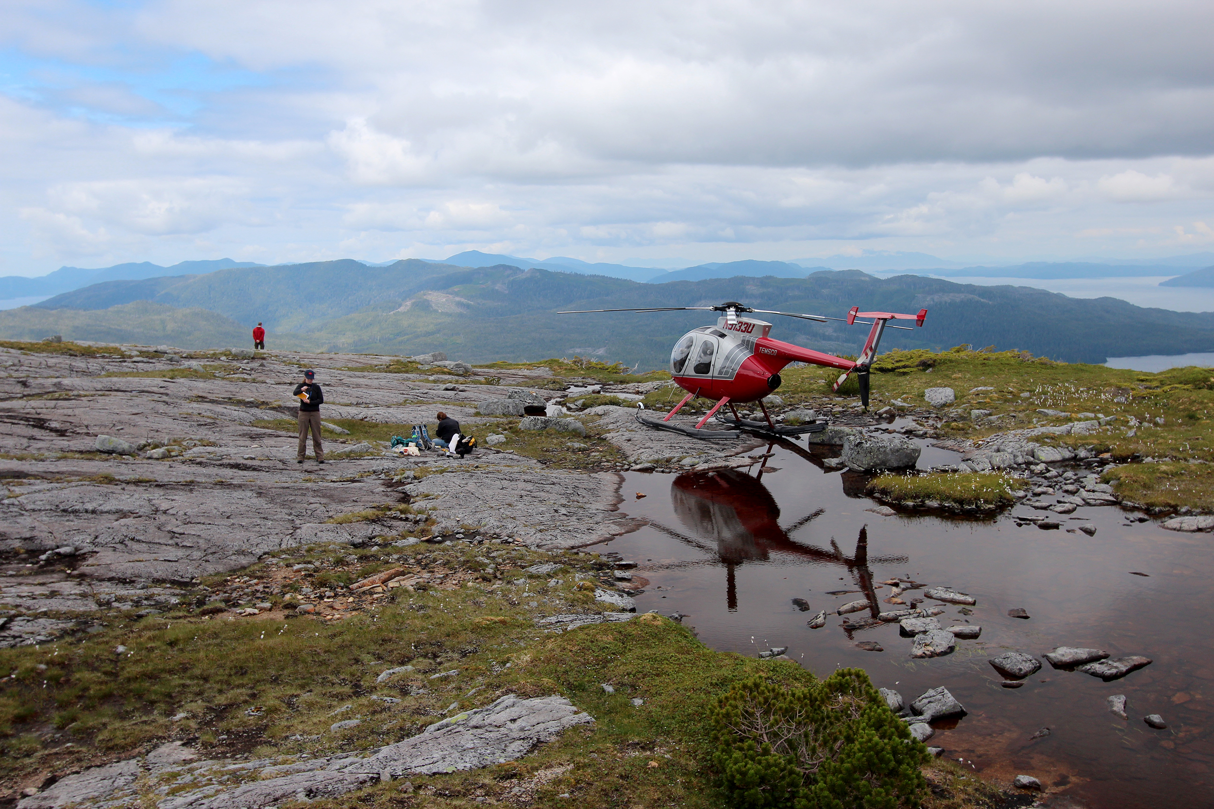 To collect data, the research team traveled by helicopter to remote sites within the Alexander Archipelago in southeast Alaska. Credit: Jason Briner