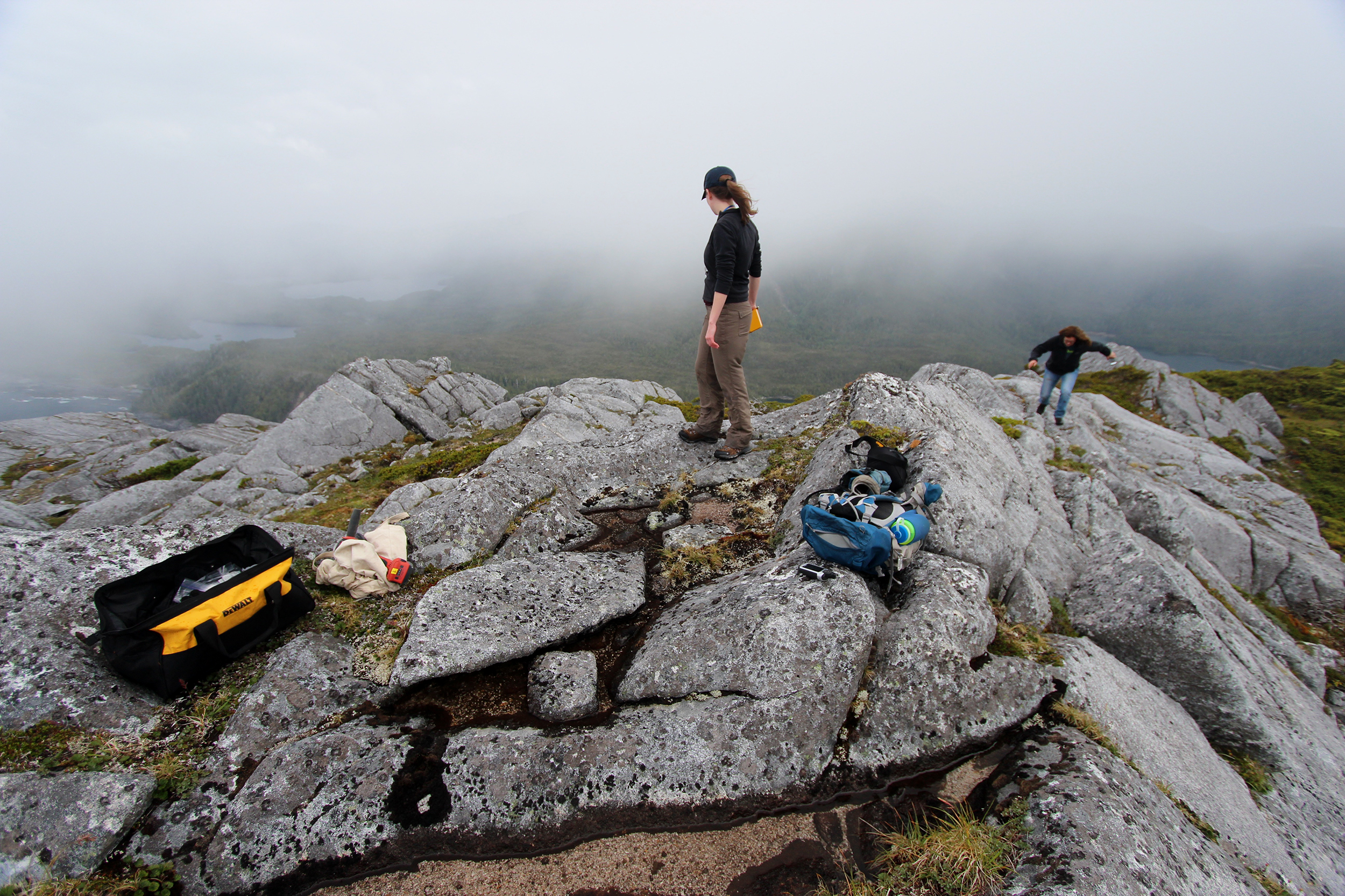 Thick vegetation, low cloud cover and mountainous terrain made finding suitable sampling sites a challenge. Credit: Jason Briner