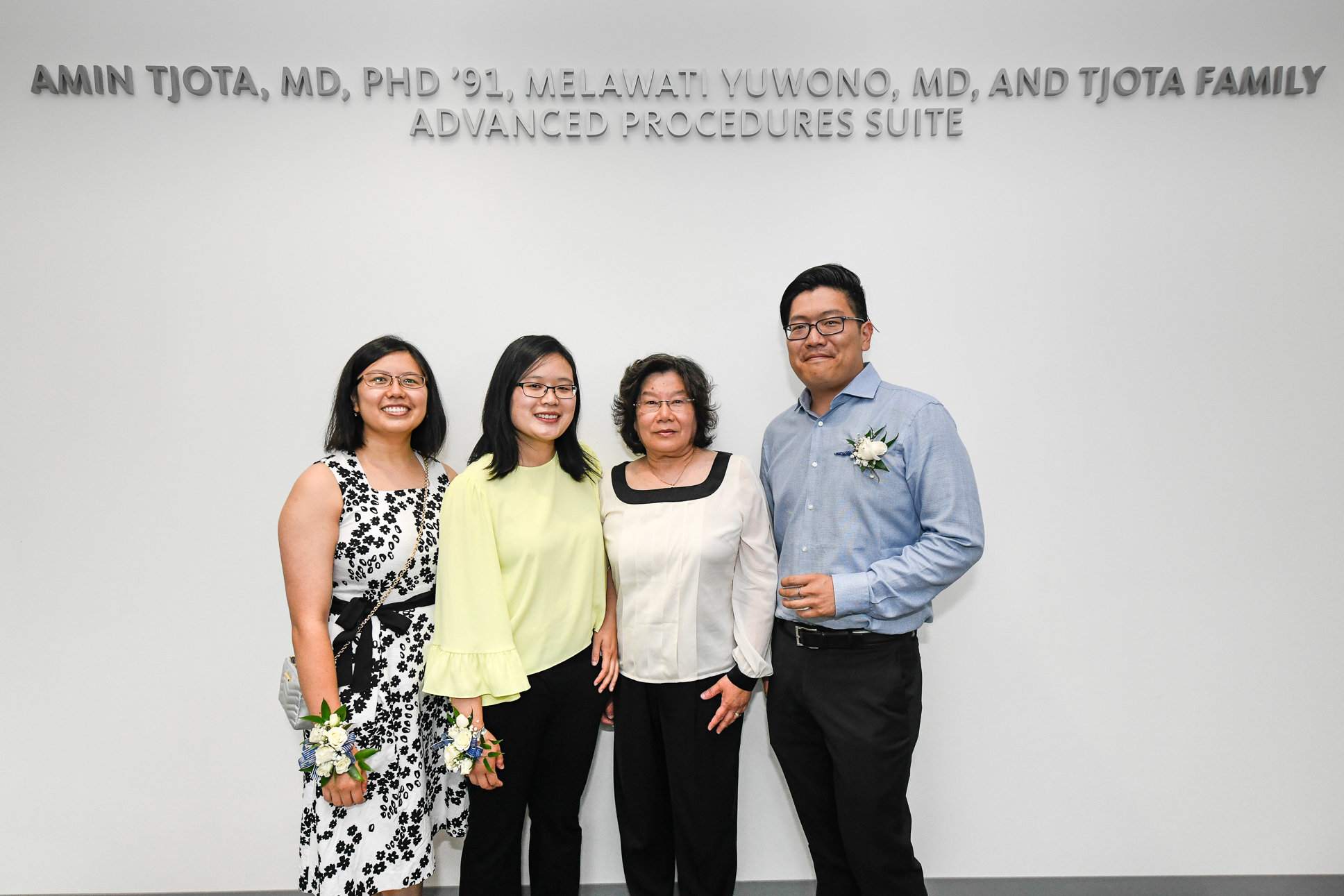 On Aug. 15, the Tjota family was present for the unveiling of the newly named robotics suite—the Amin Tjota, MD, PhD ’91, Melawati Yuwono, MD, and Tjota Family Advanced Procedures Suite — on the seventh floor of the Jacobs School building.
