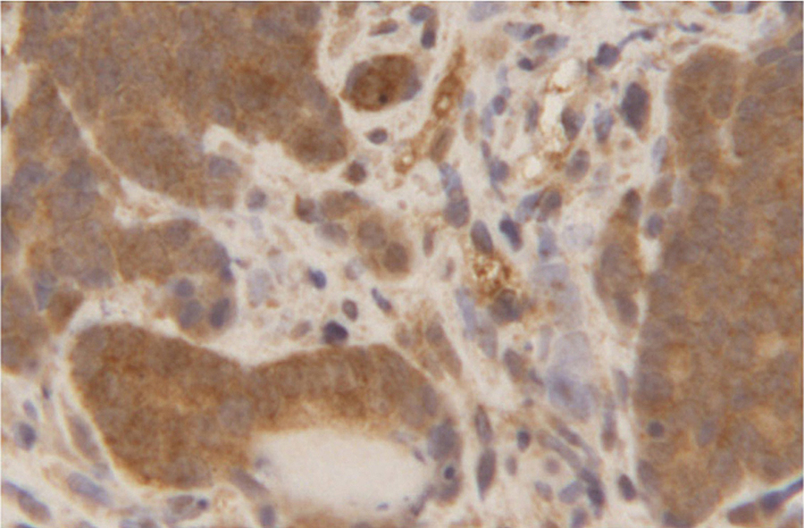 These human prostate cancer metastatic lesions have been stained (brown) to indicate the presence of myosin IC isoform A, a biomarker of metastatic prostate cancer. Researchers at UB and at Moscow State University are collaborating to determine how to develop a diagnostic test for it.