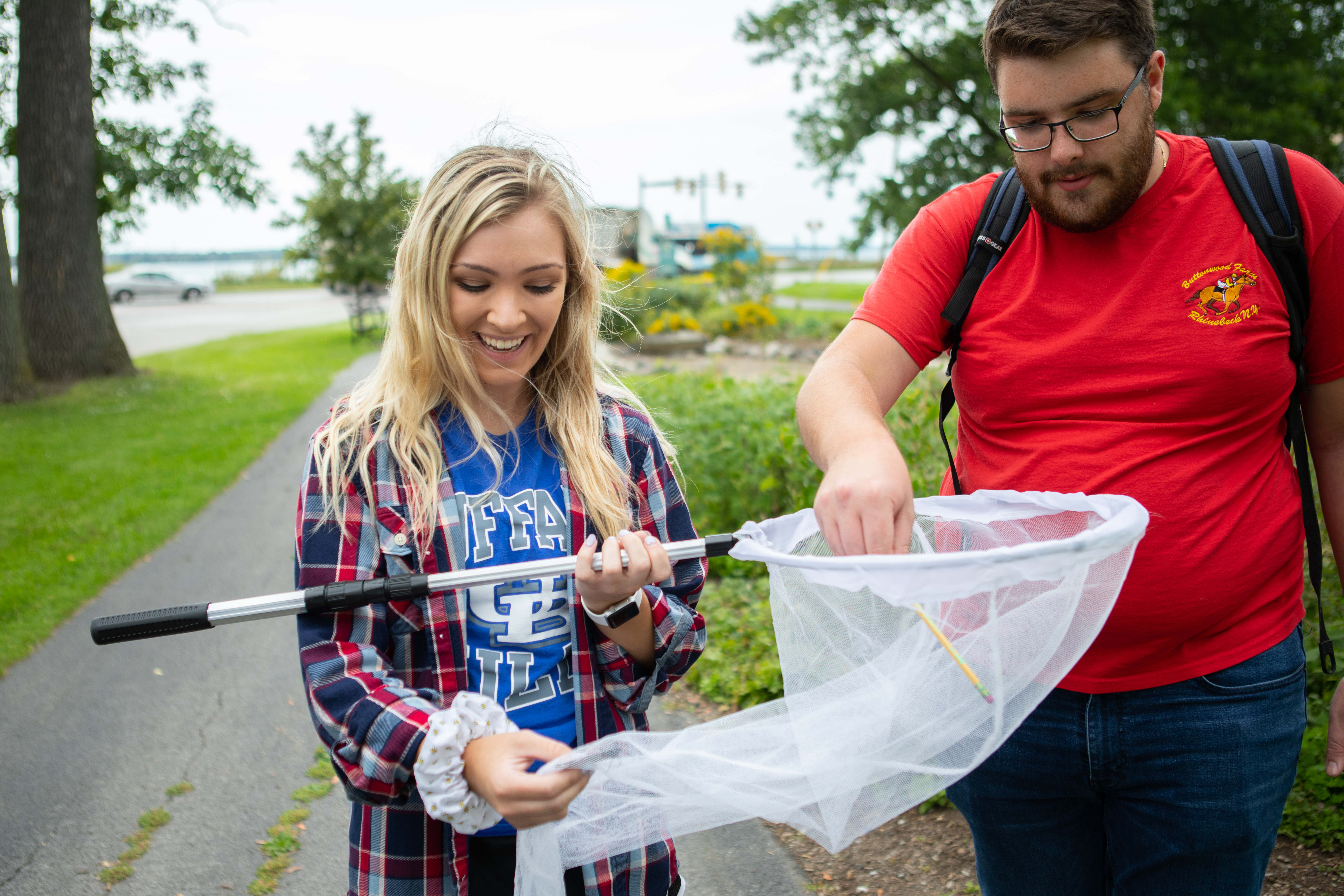The monarch tagging exercise was part of an ecological methods class taught by Nicholas Henshue, clinical assistant professor in the UB Department of Environment and Sustainability. Credit: Douglas Levere / University at Buffalo