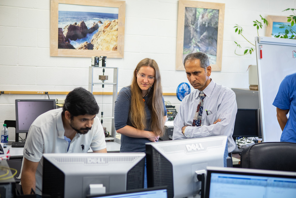 Tarunraj Singh, far right, and his students will work to develop artificial intelligence-driven technology to help people with Type 1 diabetes better monitor the condition. Credit: University at Buffalo, Douglas Levere.