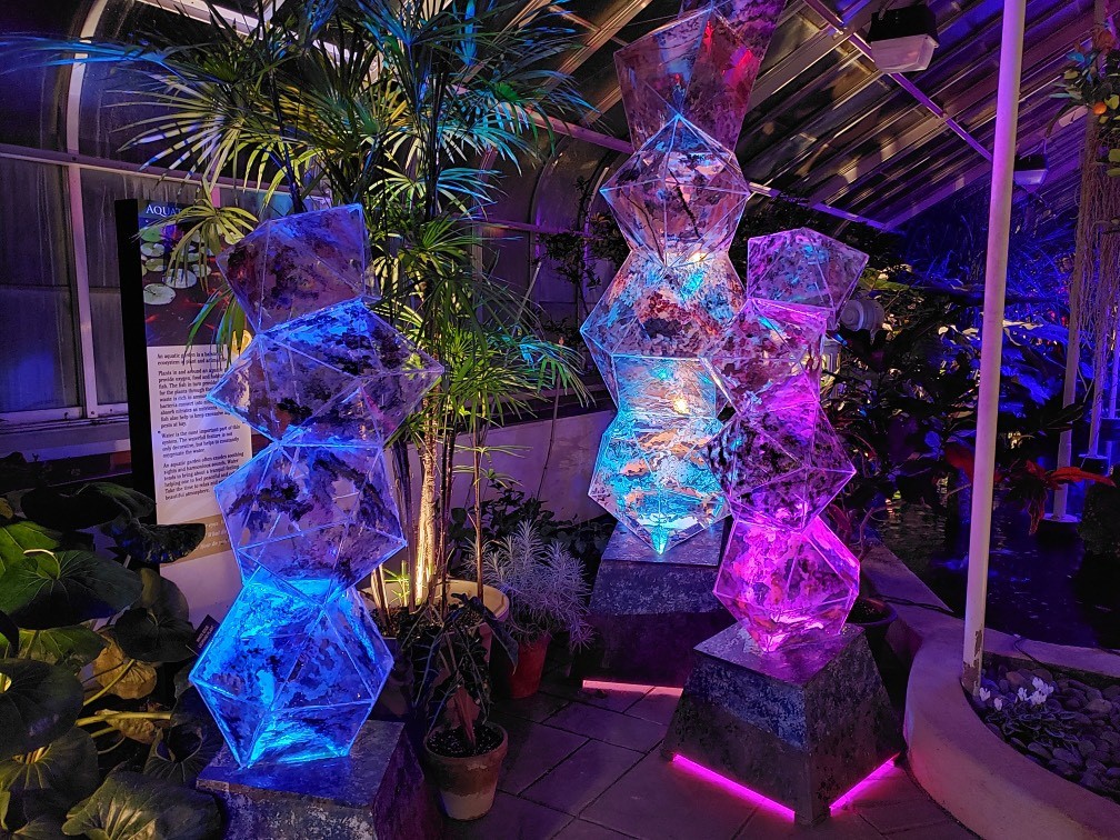 “These students are proud to contribute their theatrical sensibilities to this gem of a community event, and I am thrilled that they have an opportunity to apply their knowledge to a site-specific project,” stated Koscielniak. “The gardens present a very unusual set of circumstances, including moisture and varying temperature, and necessitate a way of working that pays respect to the precious flora that is being housed. By literally working outside the box on Lumagination, students not only gain a deeper understanding of service, they learn how to ask the right questions when working in a new space.”