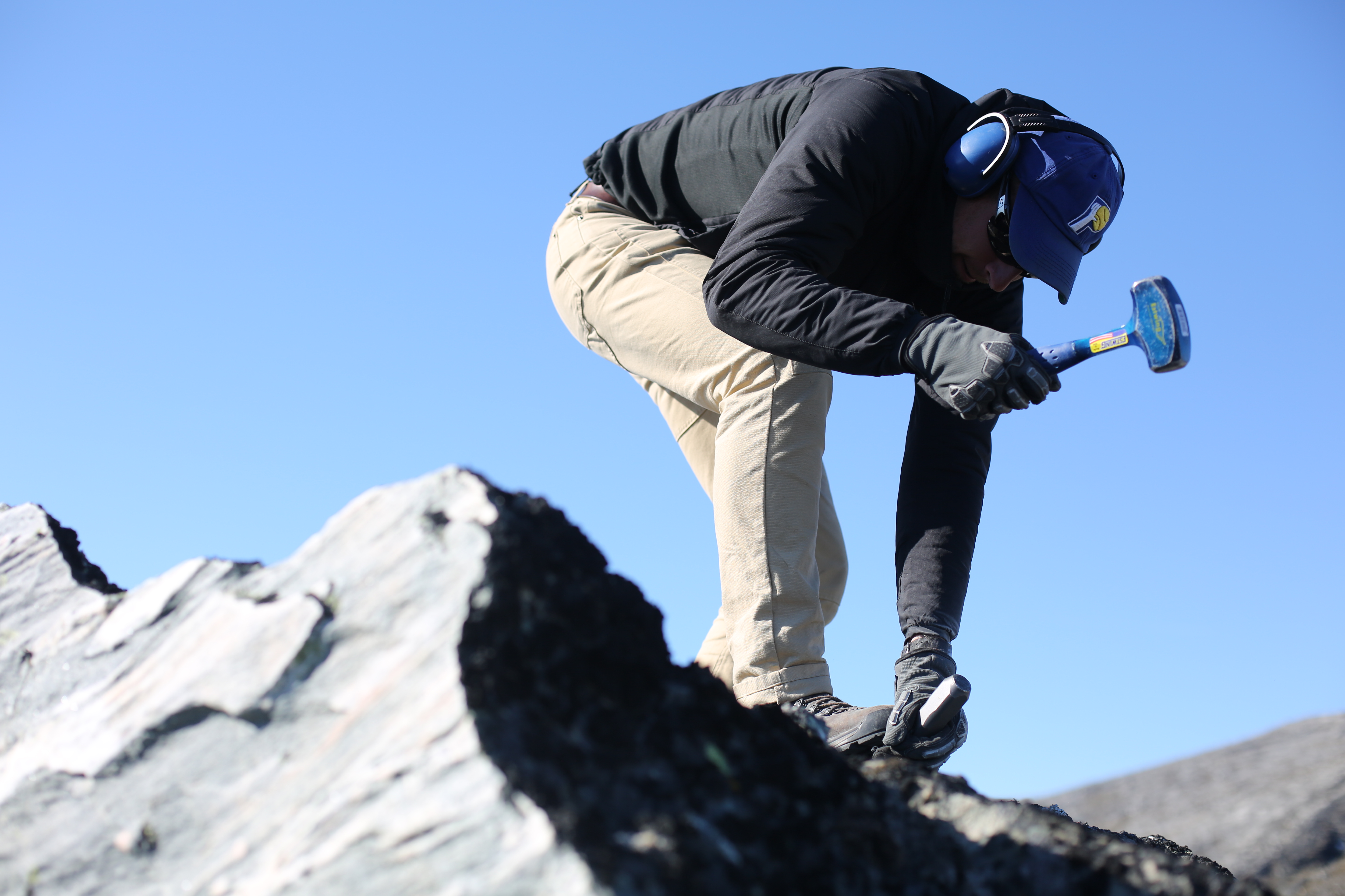 Nicolás Young, associate research professor at Columbia University’s Lamont-Doherty Earth Observatory, collects a sample from a boulder in Greenland. Such samples contain chemical isotopes that can help scientists determine the ancient boundaries of the ice sheet. Credit: Jason Briner